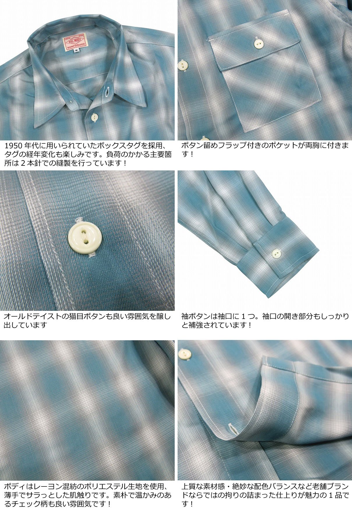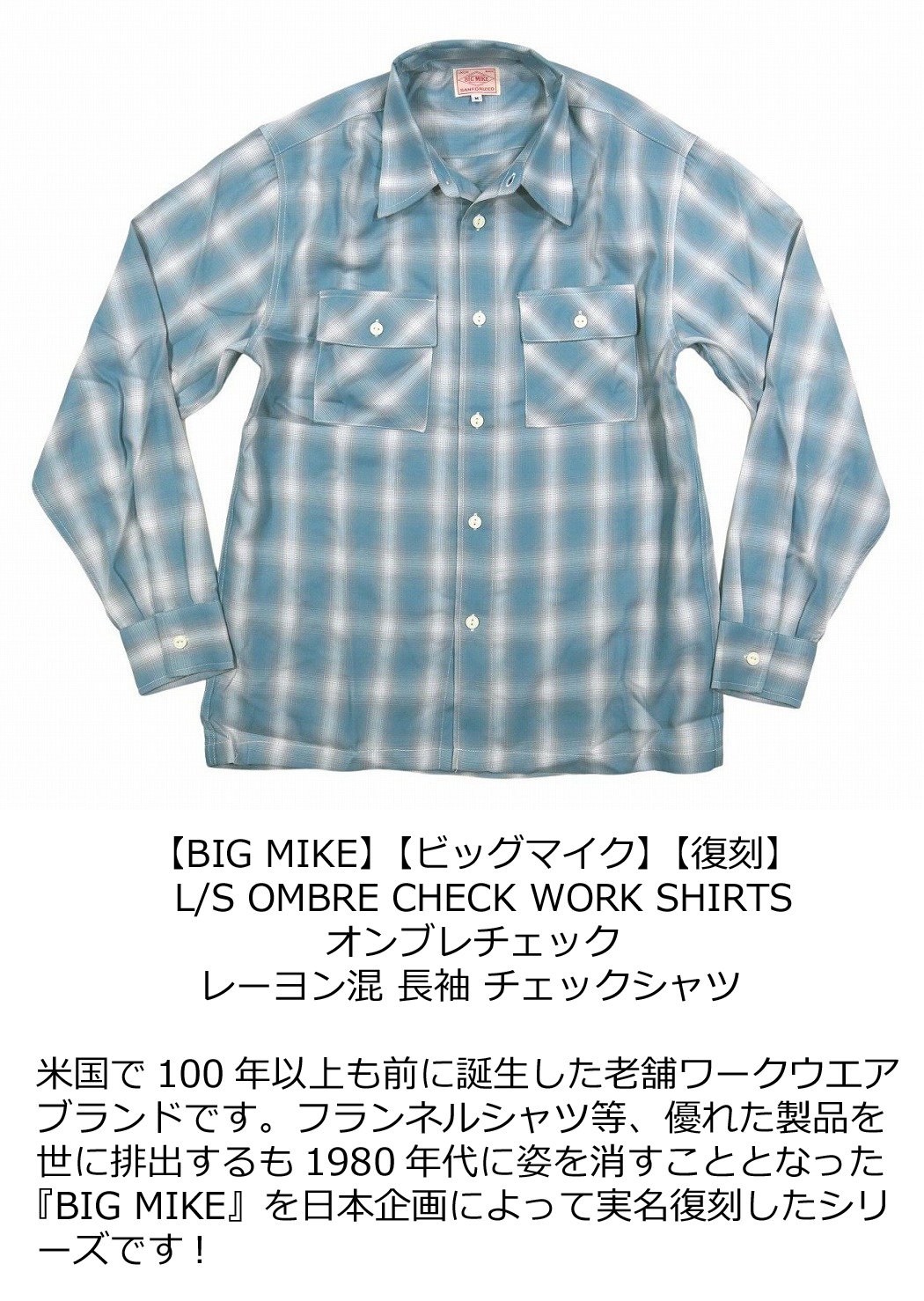 【2025春 3色3サイズ】 ad471 新品 BIG MIKE 復刻 オンブレチェック レーヨン混 長袖 チェックシャツ 102425012 メンズ ビッグマイク L/S OMBRE CHECK WORK SHIRTS ワークシャツ BIGMIKE 【smtb-kd】