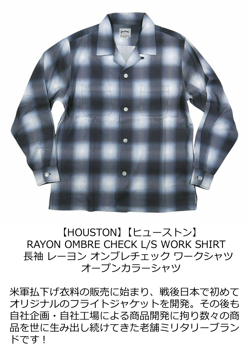 【2025春夏 2色4サイズ】 jh491 新品 HOUSTON 長袖 レーヨン オンブレチェック ワークシャツ 41188 メンズ ヒューストン RAYON OMBRE CHECK L/S WORK SHIRT オープンカラーシャツ アメカジ 【smtb-kd】