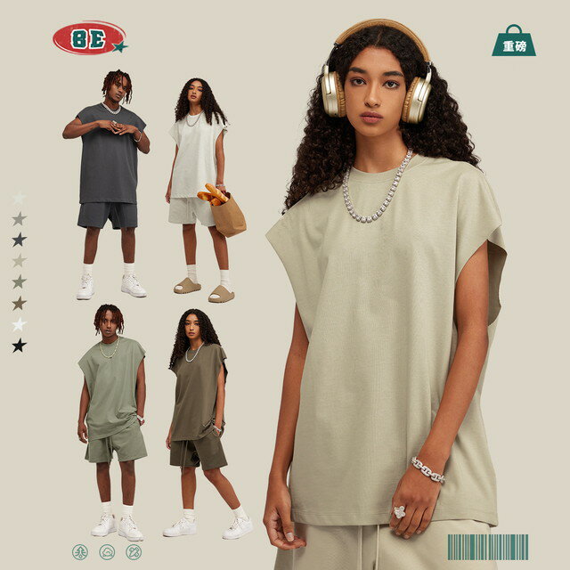 送料無料 男女兼用 上下セット 無地 ノースリーブTシャツ + ハーフパンツ シンプル 2点セット 黒 グレー 紺 緑 ピンク 青 黄色 白 茶 ベージュ ダンス衣装 ストリート スポーツ HIPHOP スケーター