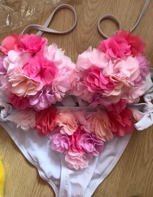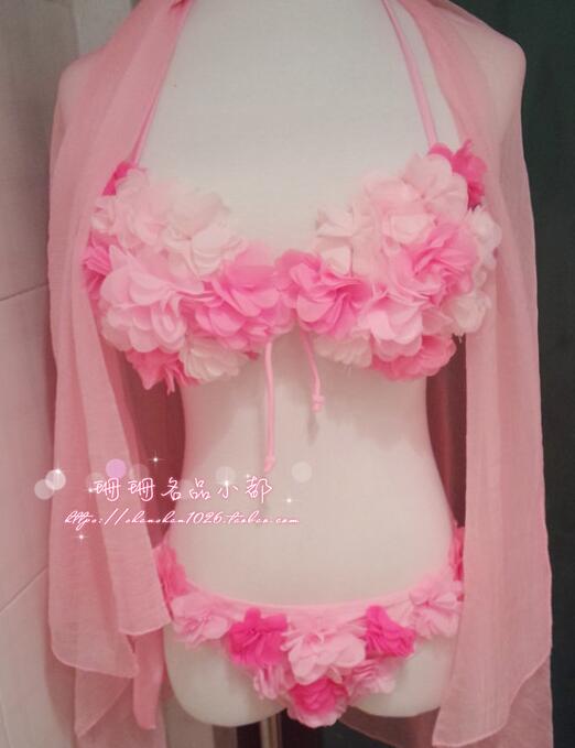 立体花びら水着 三角形ビキニ2点セット ヒップスカーフ3点セット ショール ヒップカバー 可愛いピンク色水着 温泉海プール人気花びら水着 新婚旅行プレゼント