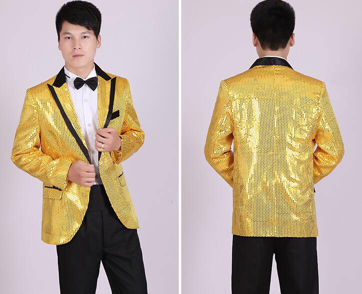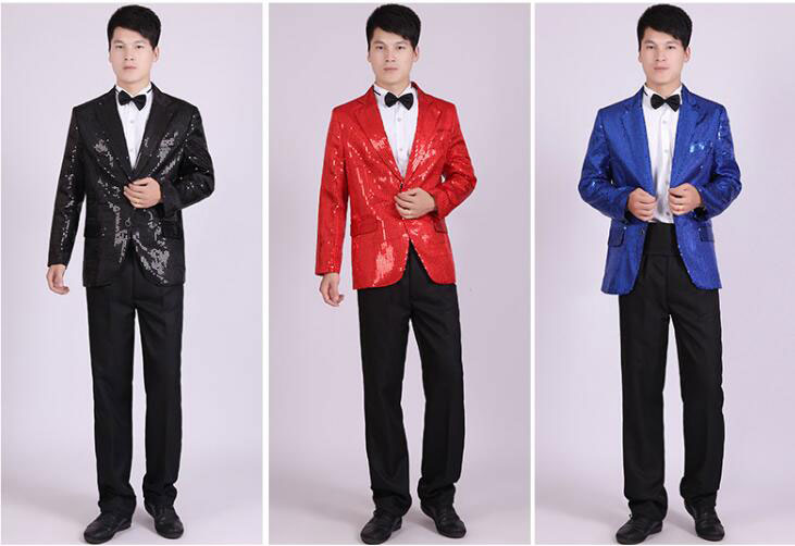 舞台ステージ衣装 スパンコールジャケット メンズ トップス 長袖スーツジャケット タキシード きらきら 燕尾服 カラースーツ 忘年会 新年会 パーティー コスプレ衣装 カラオケ衣装 赤 黒 金 銀 ブルー