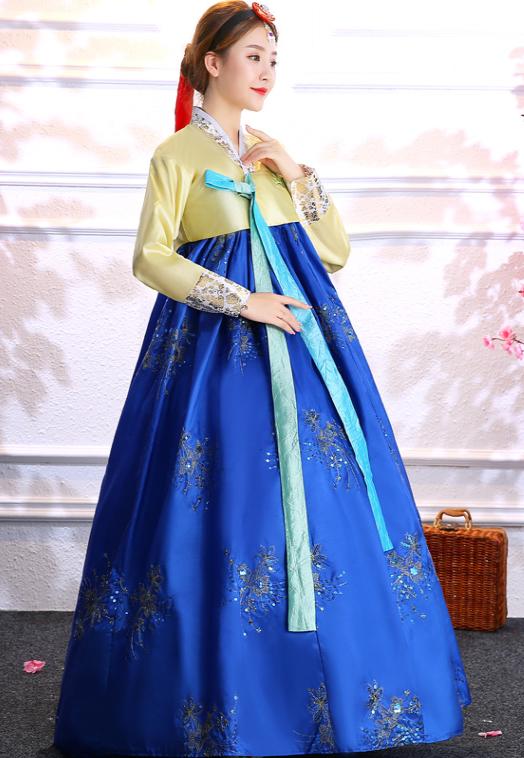 韓服 チマチョゴリ 韓国民族衣裳 舞台 ステージ ダンス 衣装 刺繍入 宮廷 韓服 ドレス チマチョゴリ 朝鮮族ウエディングドレス 韓流コスプレ衣装 ハロウィン衣装 イベントコスプレ 演出ドレス パニエ ヘアバンド対応可