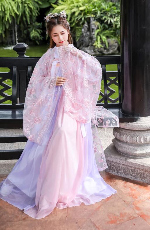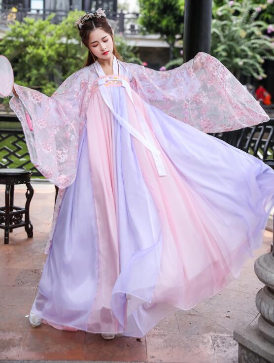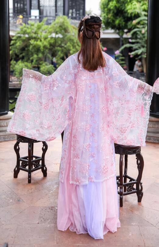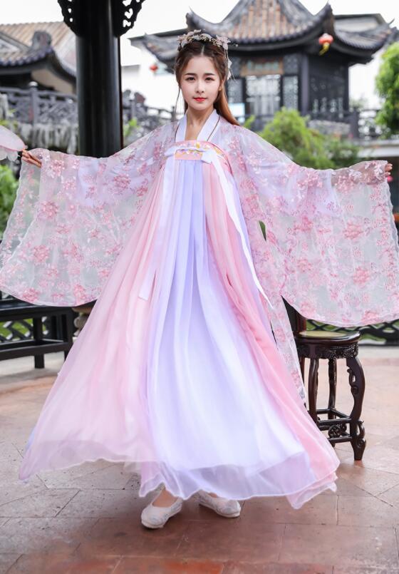 可愛い漢服&唐装 振袖チャイナ服 ピンク系 刺しゅう中華服 ロング 豪華チャイナドレス 華流コスプレ舞台衣装 華やか華服 中国風仮装変装 大人 レディースコスチューム コスプレ衣装