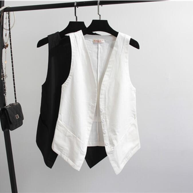 ベスト レディース ジレ ベスト 麻調 春夏綿麻チョッキ ジャケット 快適なアウター ショートベスト ノースリーブ トップス 黒 白 無地