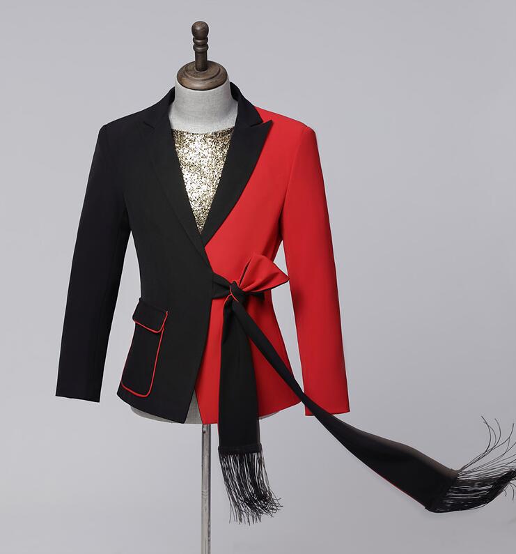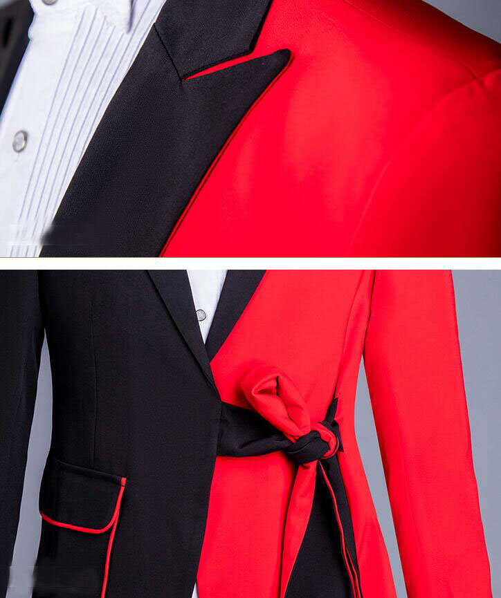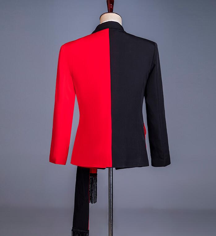 スーツ ステージ衣装 メンズ バイカラー 黒赤 ジャケット単品 2点セットスーツ フリンジベルト 帯 おしゃれ 紳士服 礼服 ダンス衣装 舞台衣装 配色 ツートンカラースーツ 忘年会 パーティー 結婚式 格好良い 大人 演出 ダンス 衣装 舞台スーツ 派手 M L XL 2XL 3XL 4XL 5XL