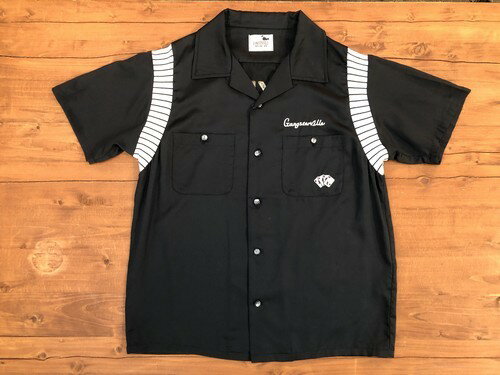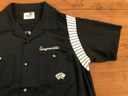 【GANGSTERVILLE】ギャングスタービル JACKPOTS - S/S BOWLING SHIRTS (BLACK) オープンカラー ボーリング 半袖シャツ