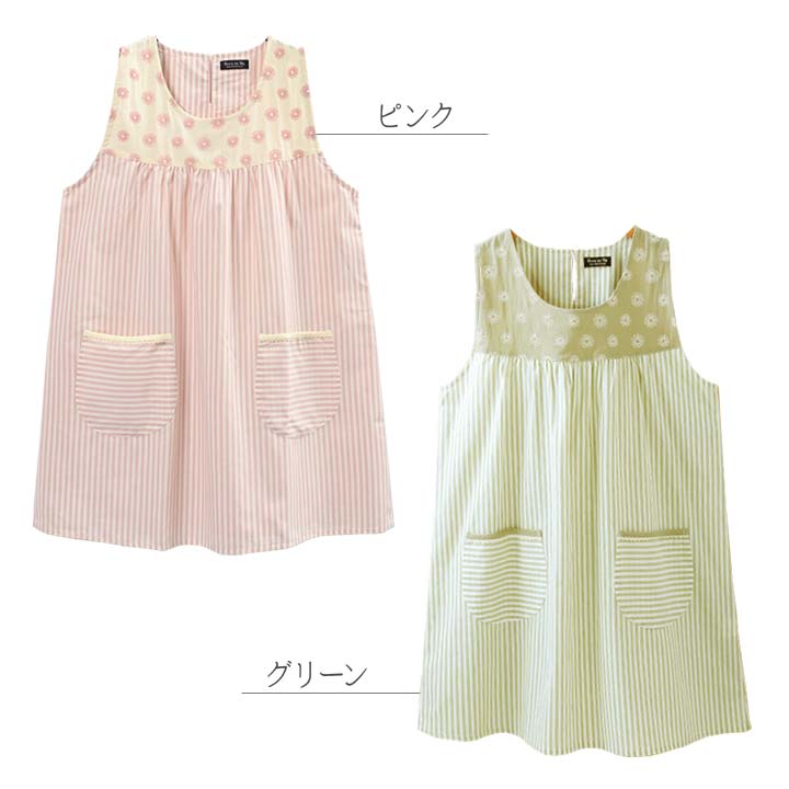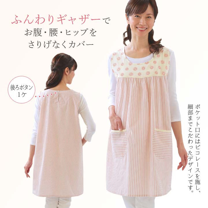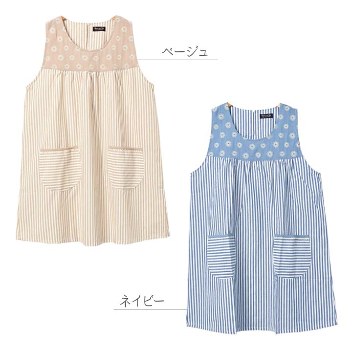 刺しゅうチュニック レディース トップス エプロン 後ろボタン 切り替え 花モチーフ 刺繍 無地 ストライプ ピコレース ギャザー 可愛い オシャレ【メール便可】
