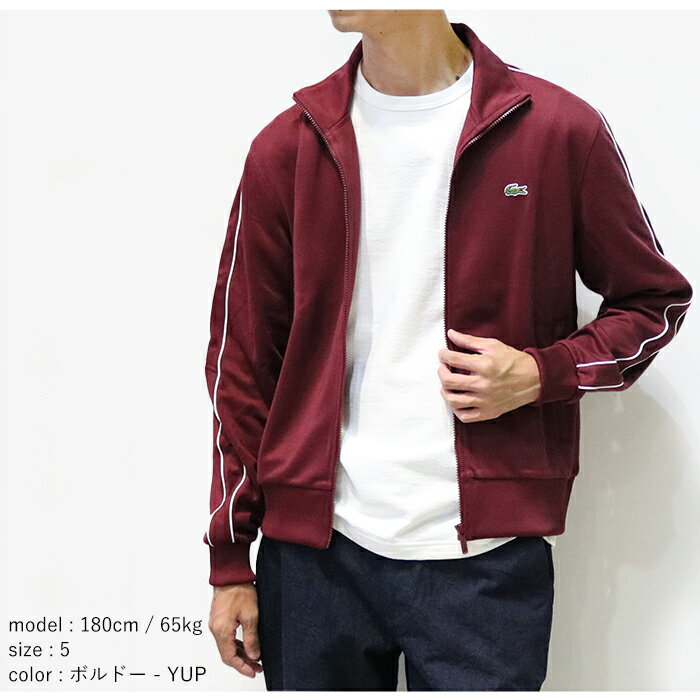 【10%OFF】 LACOSTE ラコステ ショルダーパイピング鹿の子地トラックジャケット [Lot/SH1457-10] ジャージ スウェット ジャケット メンズ トップス カーディガン ホワイト レッド トラックスーツ スポーティ ストリート トラックジャケット