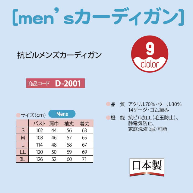 抗ピルメンズカーディガン D-2001 3L ディーフェイズ【ナース用カーディガン ナースカーディガン 看護用カーディガン 看護カーディガン 医療用カーディガン 事務用カーディガン】
