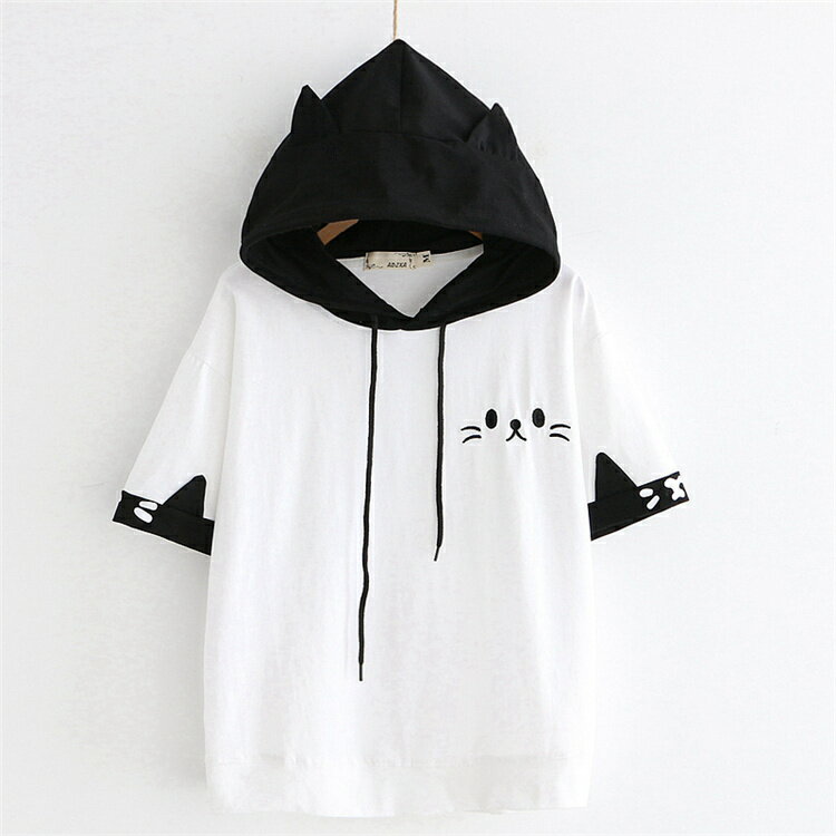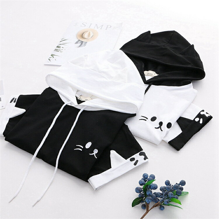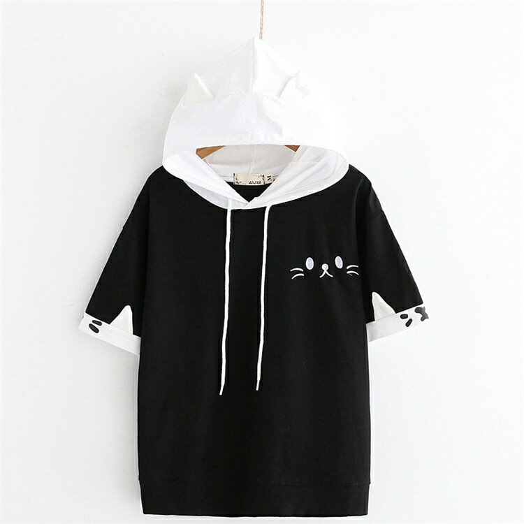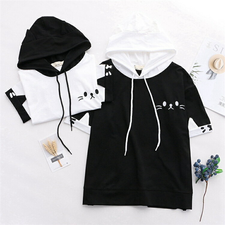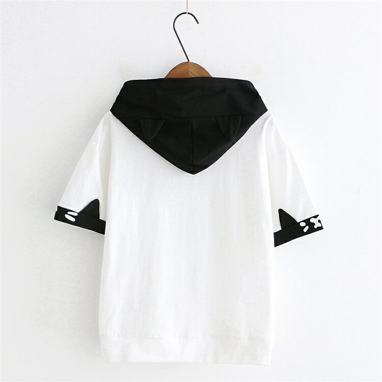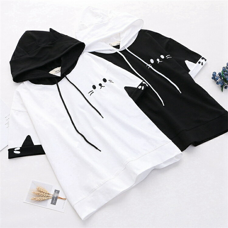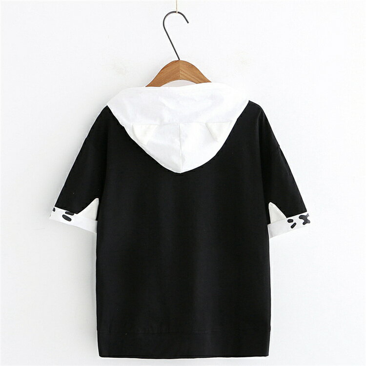 送料無料 切り替えルームウェア男女兼用Tシャツかわいいプルオーバー スウェット耳フード付き ジャケット パーカーコートプルオーバーパーカー【ルームウェア】長袖半袖Tシャツトップスフード付き