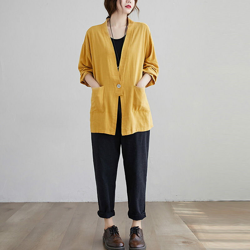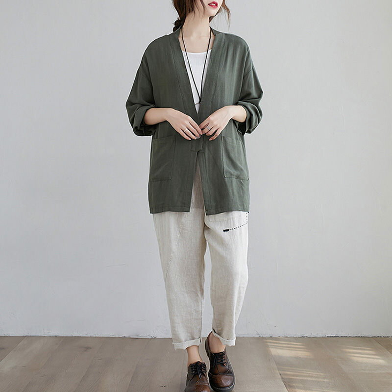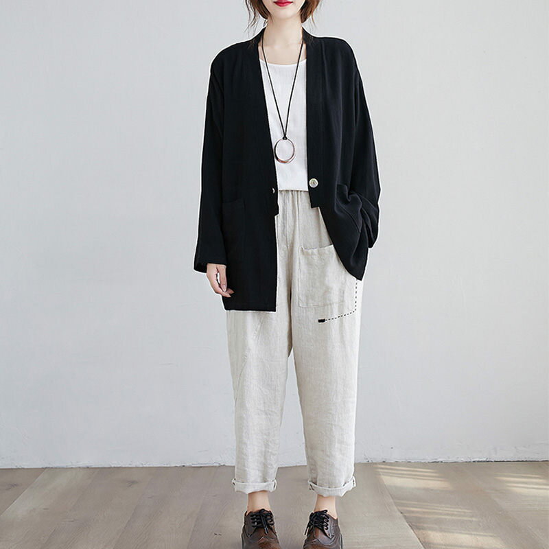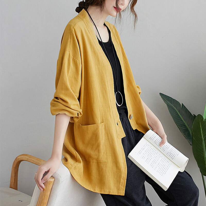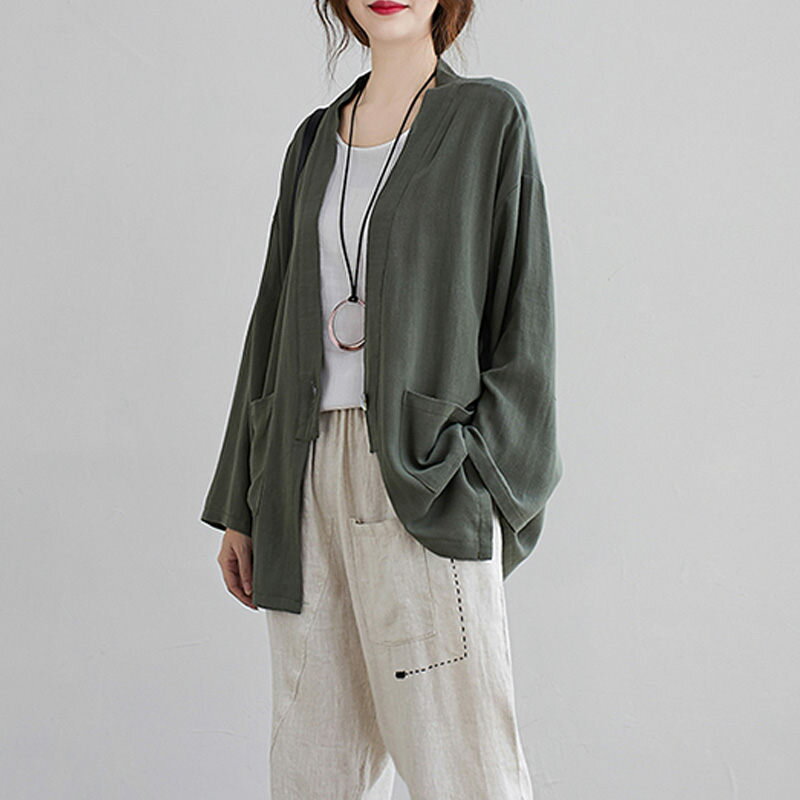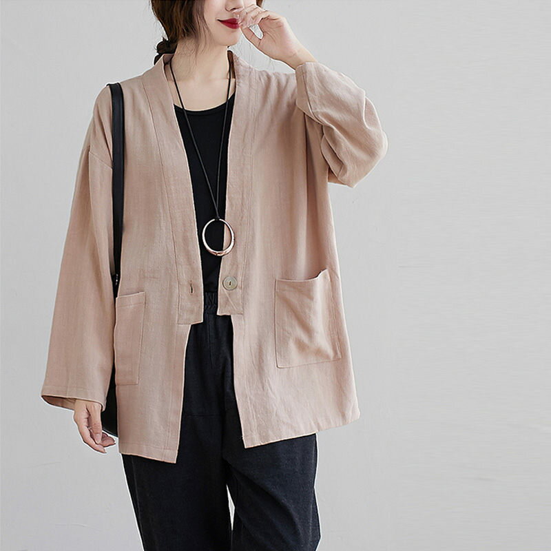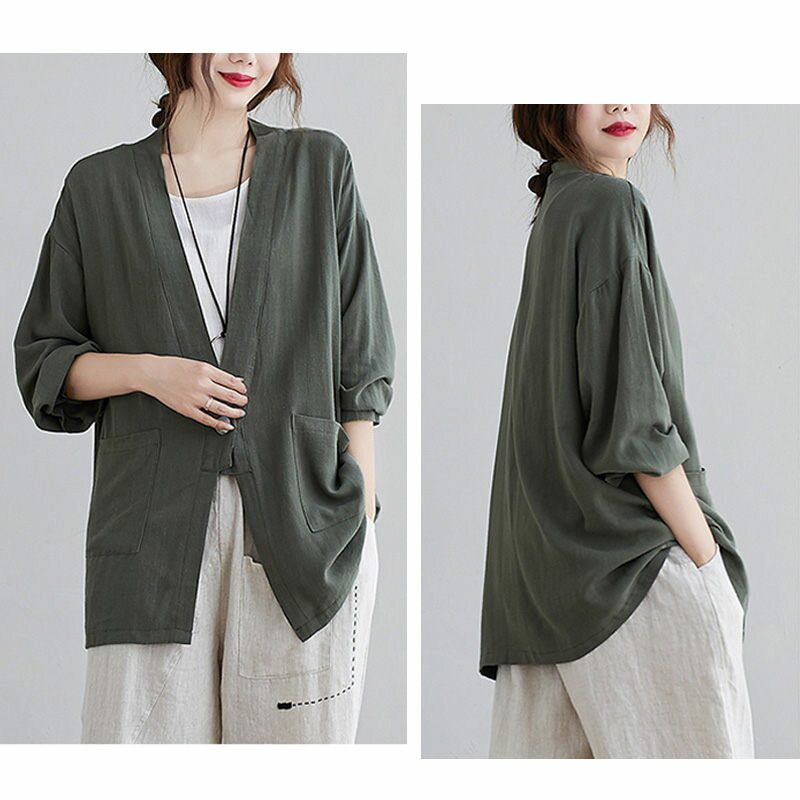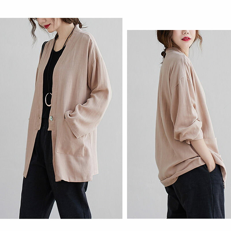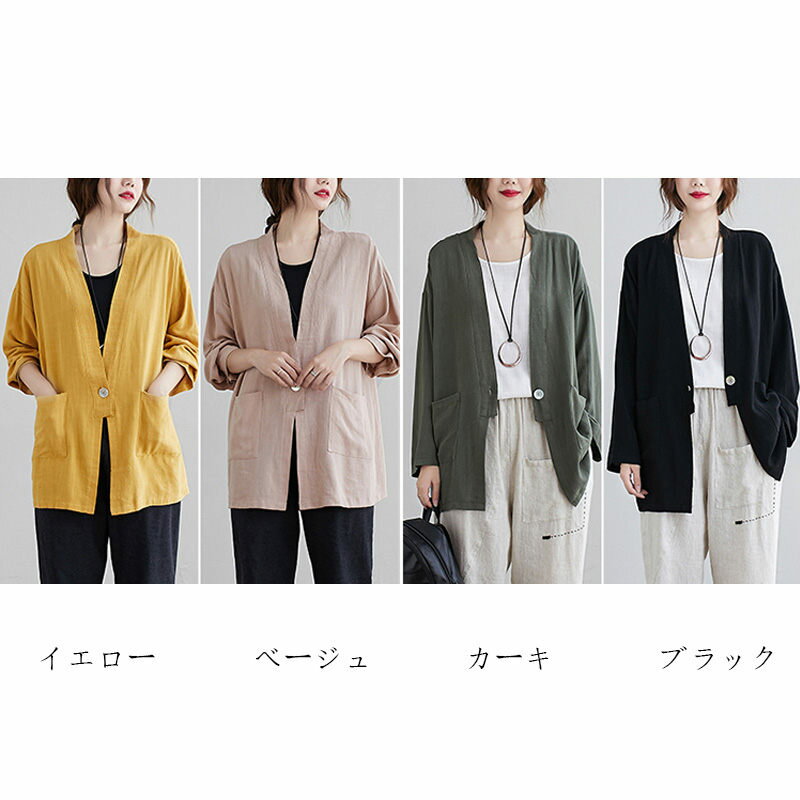 カーディガン レディース 薄手 春 夏 サマー カーディガン 長袖 アウター ジャケット ノーカラー 綿麻 羽織もの トップスショート丈 羽織り 冷房対策 サマーカーデ 大きいサイズ 無地 ゆったり 体型カバー 綿麻風 シンプル 前開き 吸湿
