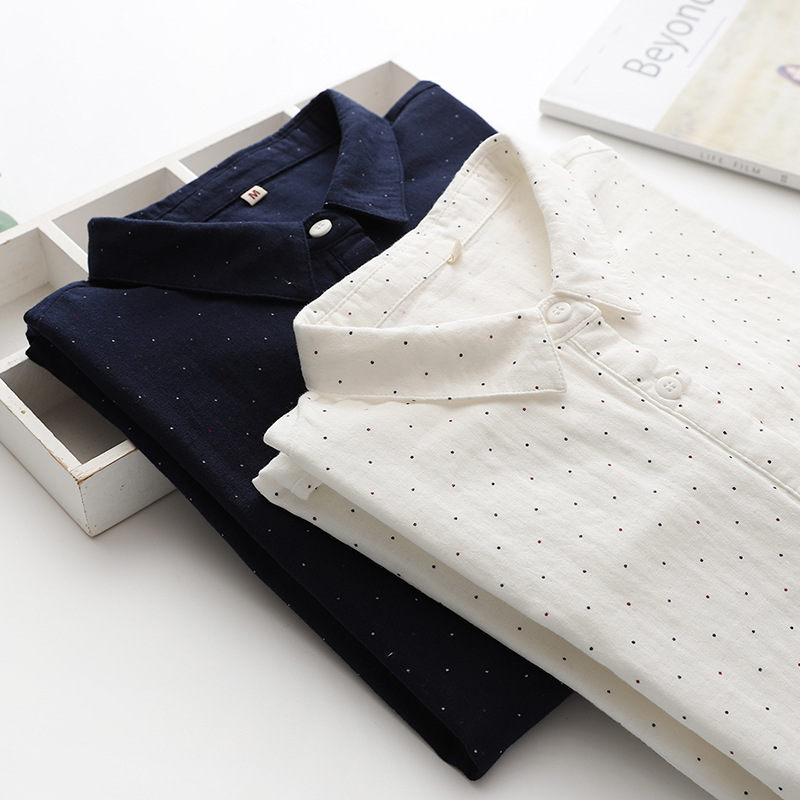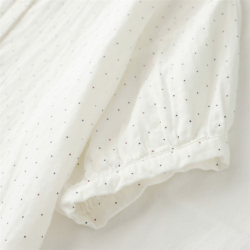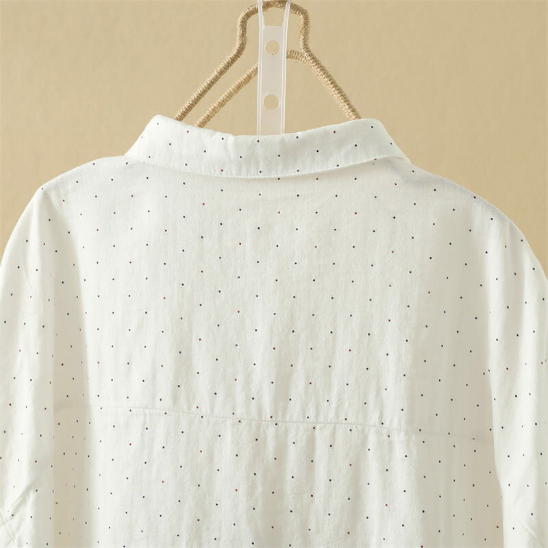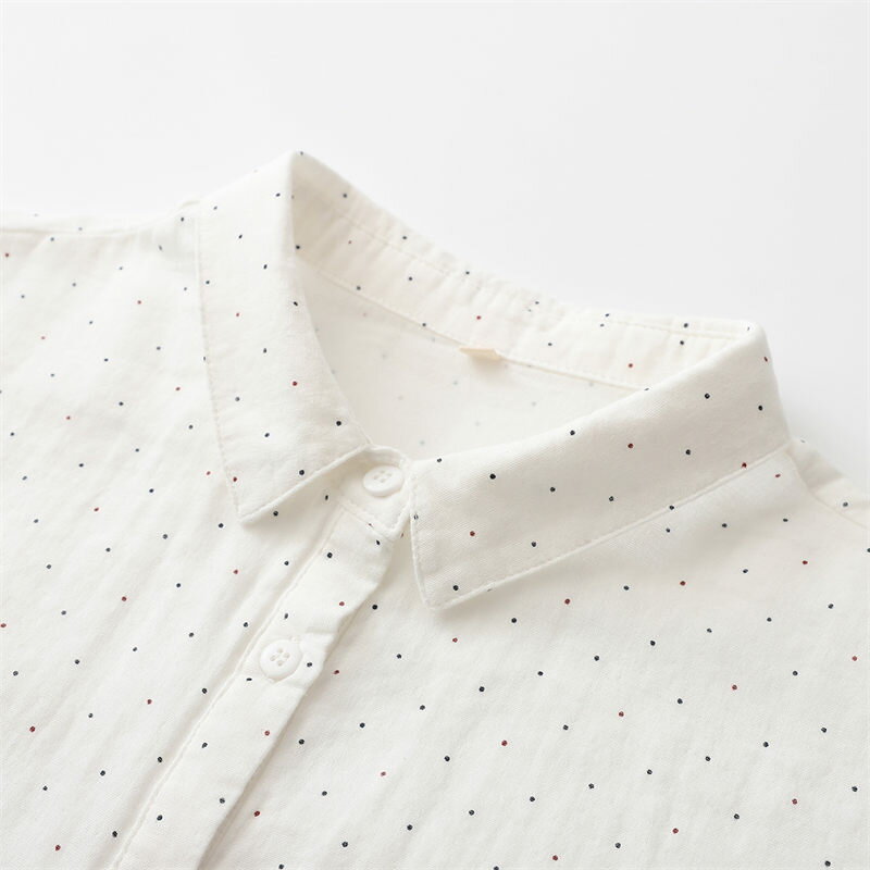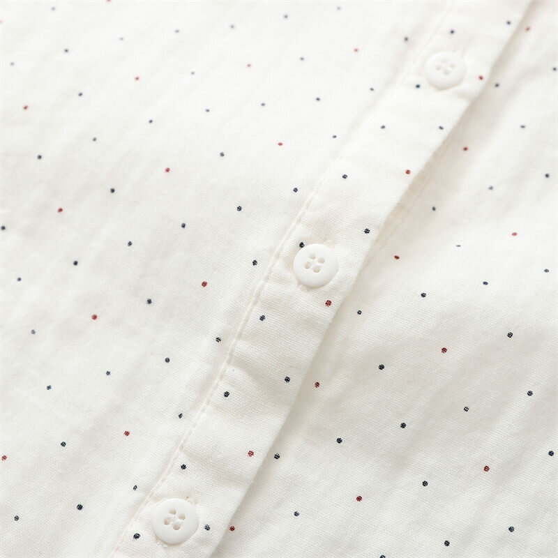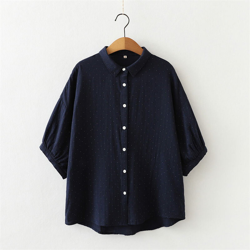 ドルマン袖 シャツ チュニック ブラウス 綿100 ガーゼシャツ 大きいサイズ 半袖 夏 コットン 白シャツ ドット柄 シャツブラウス 7分袖 ゆったり 春 夏シャツ ホワイトシャツ 体型カバー シンプル 通気性 前開け 吸湿 速乾