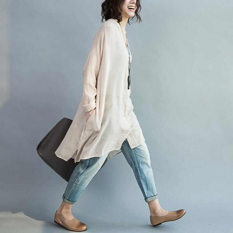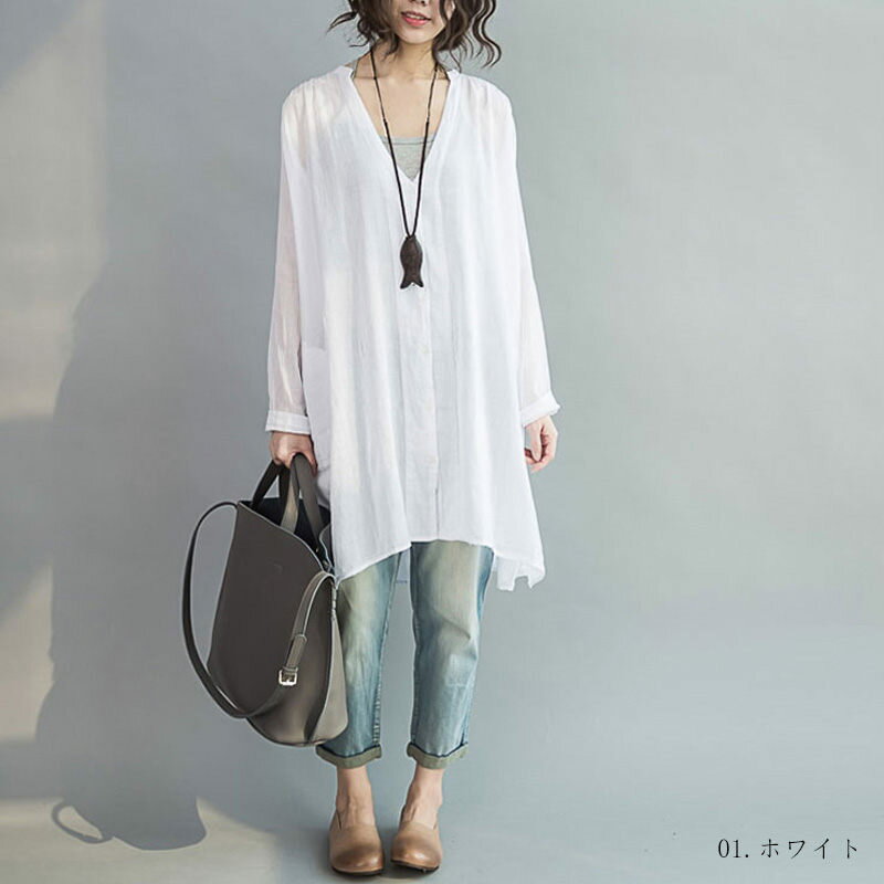 ロングシャツ 夏 レディース チュニック シャツ トップス シャツブラウス 長袖 羽織り 大きいサイズ 薄手 ロング vネック 羽織もの 冷房対策 おしゃれ シャツ ロング ミドル丈 前後差 前開き ゆったり 春夏 秋 大人可愛い 体型カバー 送料無料
