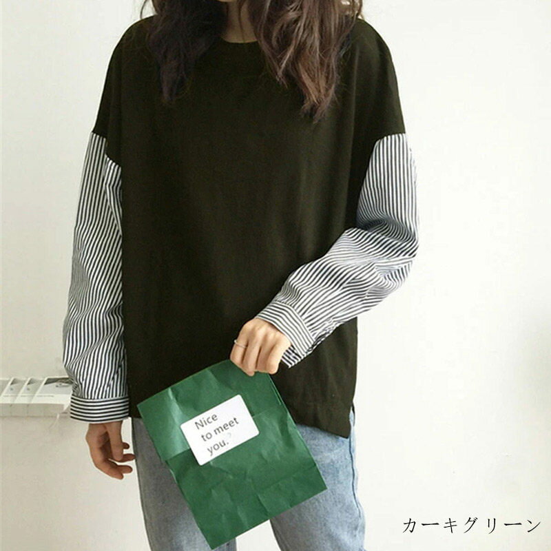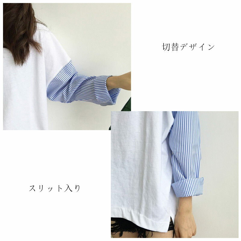 カットソー 長袖 レディース Tシャツ 切り替え トップス チュニック tシャツ 春 夏 秋 ドッキング おしゃれ きれいめ 長袖tシャツ ストライプ 柄 大きいサイズ ゆったり プルオーバー ドッキングTシャツ クルーネック 着痩せ 体型カバー 春秋 大人可愛い 40代 50代 送料無料