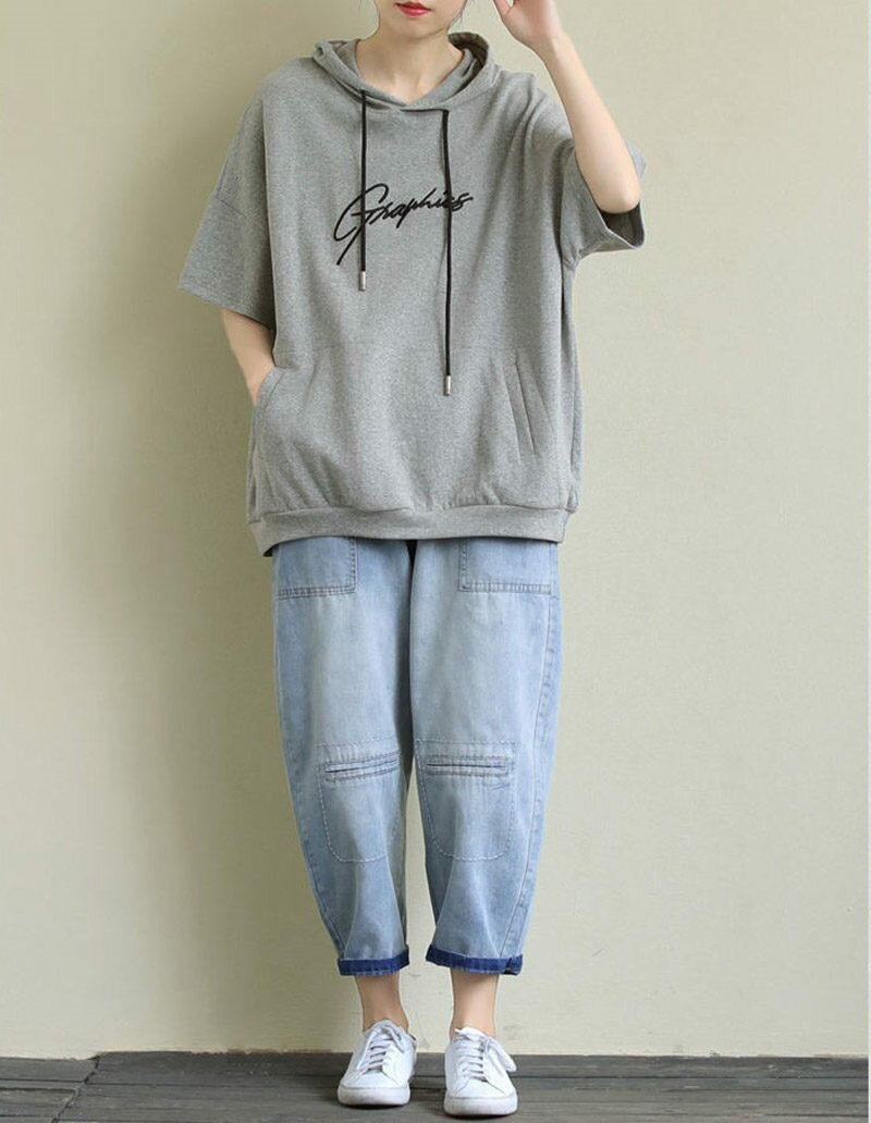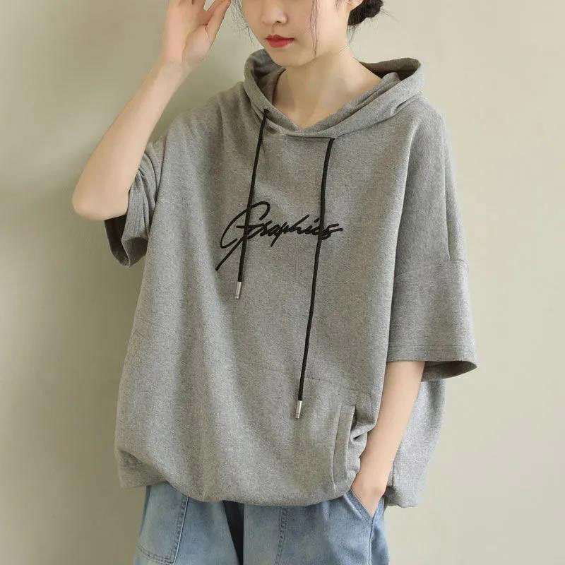 半袖 パーカー レディース フード付き Tシャツ プルオーバーパーカー 夏 半袖パーカー 綿 カジュアル トップス ベーシック シンプル ゆったり 大きいサイズ スポーティ 着回し グレー シンプル 着回し 40代 50代 60代 送料無料