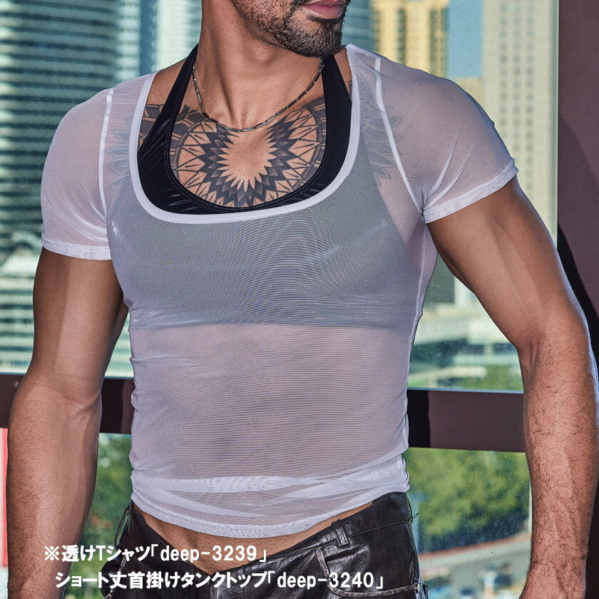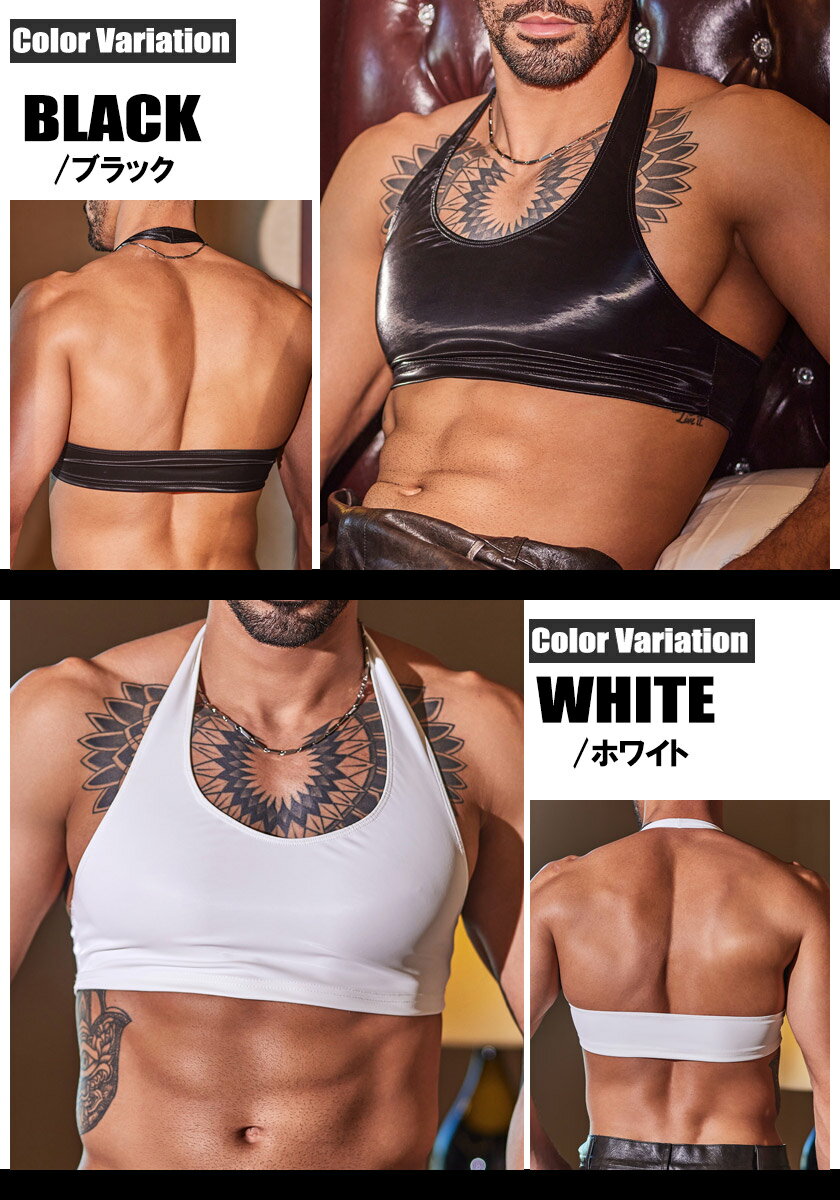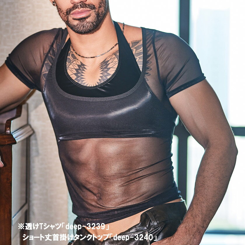 DEEP NOVA/ディープノバ ハーフタンクトップ クロップドタンクトップ タイトフィット ノースリーブトップス首掛け式 サテン調 ツルツル テカテカ スベスベ 男性下着 メンズ