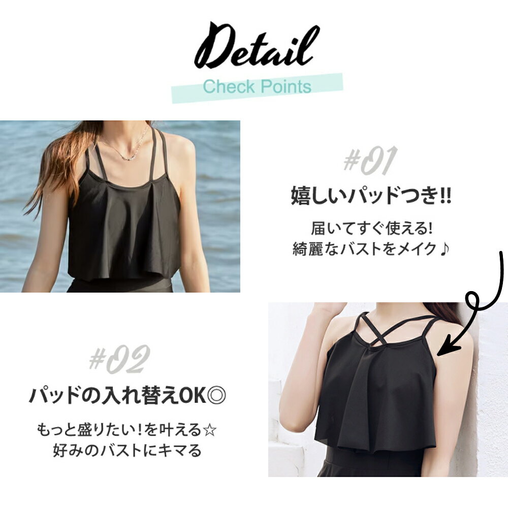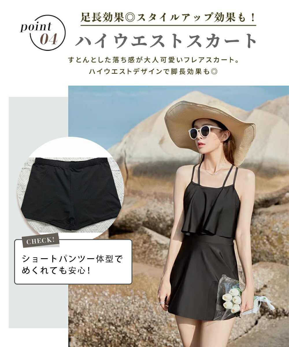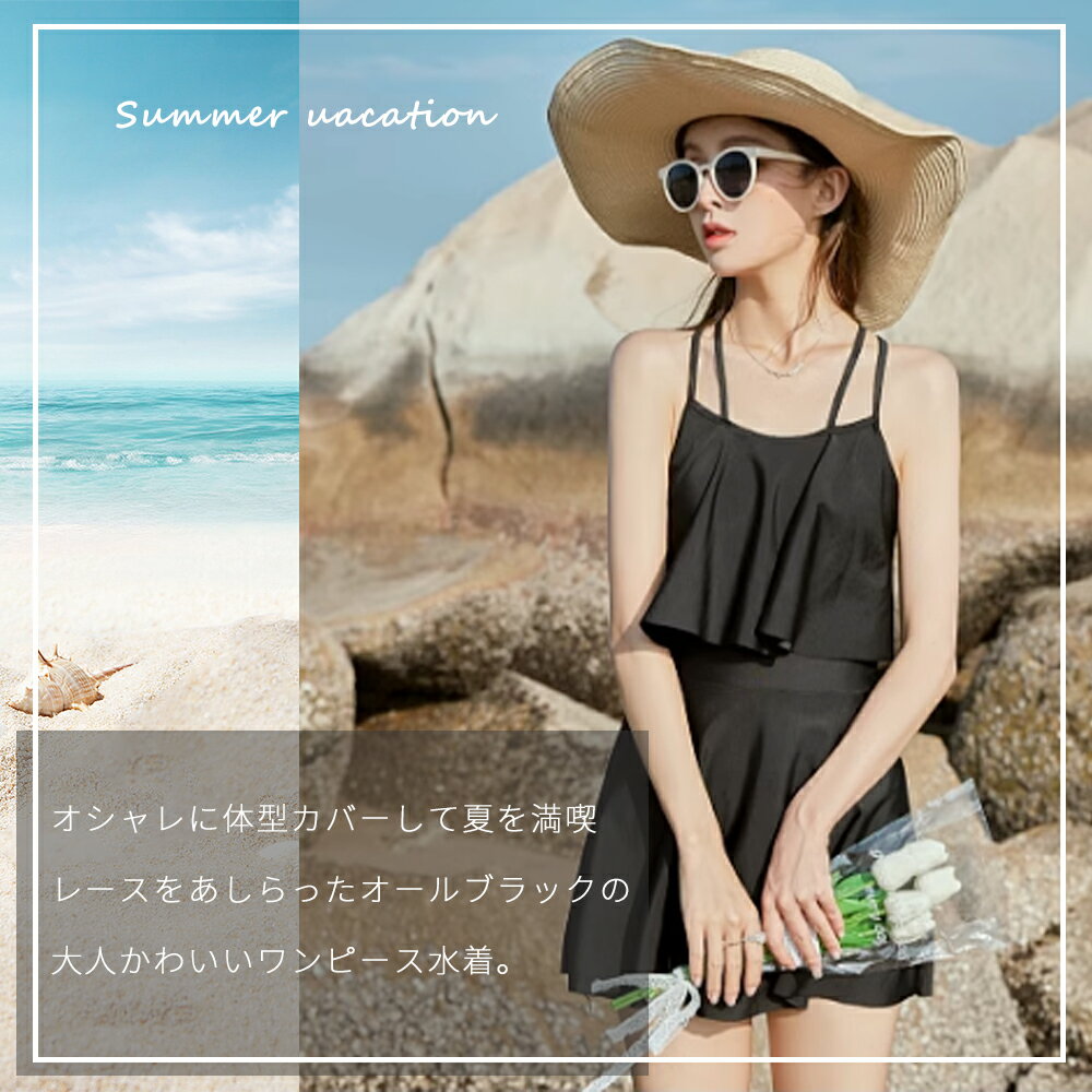 水着 ワンピース 水着 レディース体型カバー 2点セット 2way 体型カバー水着 ぽっちゃり 10 代 20代 30代 ママ水着 バックフリル セクシー シンプル レースアップ オトナ女子 パッド付き 盛れる 可愛い 海 プール