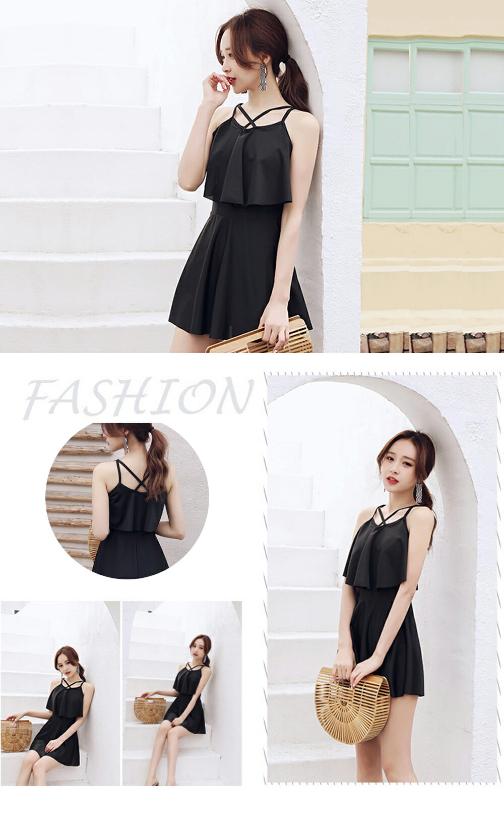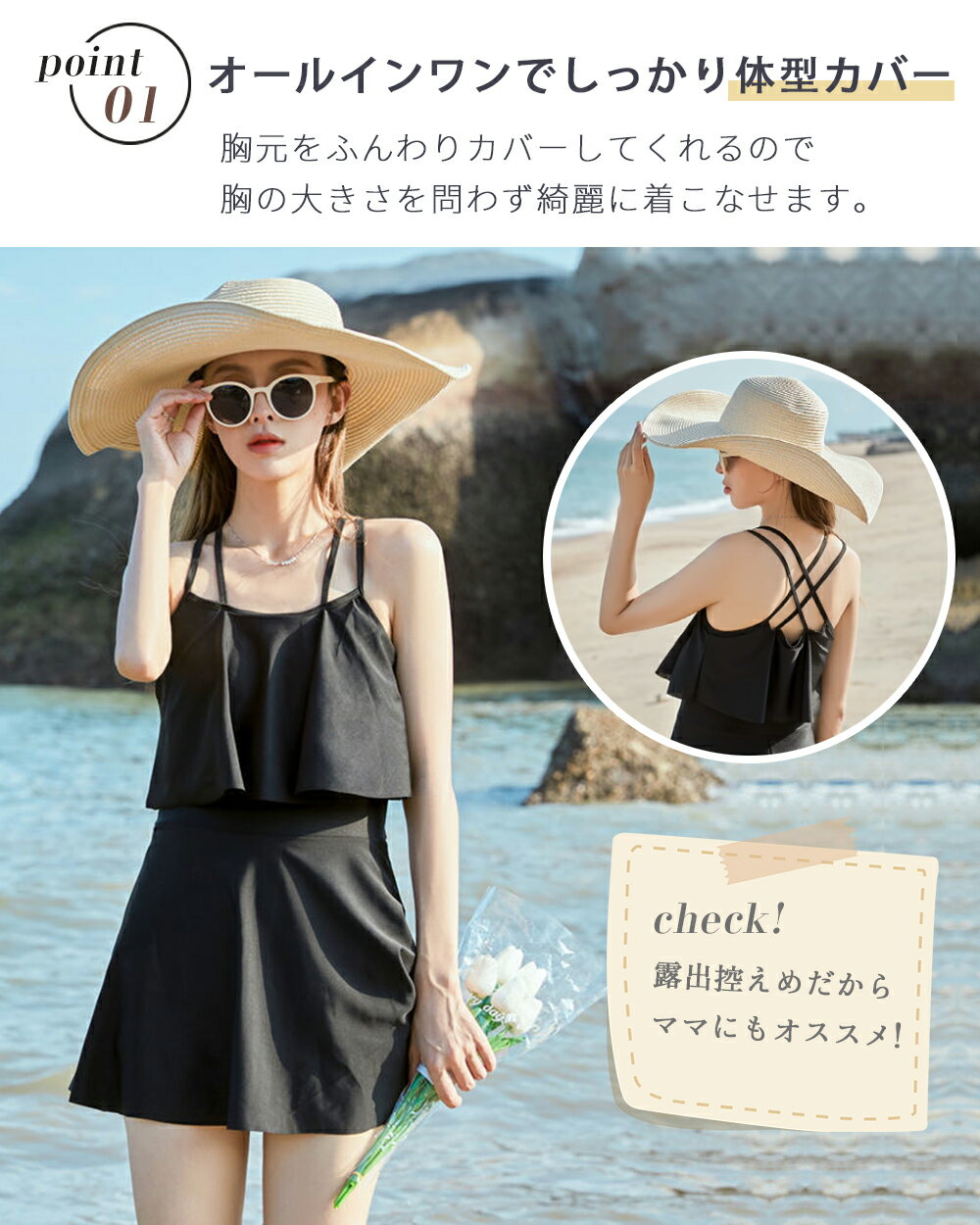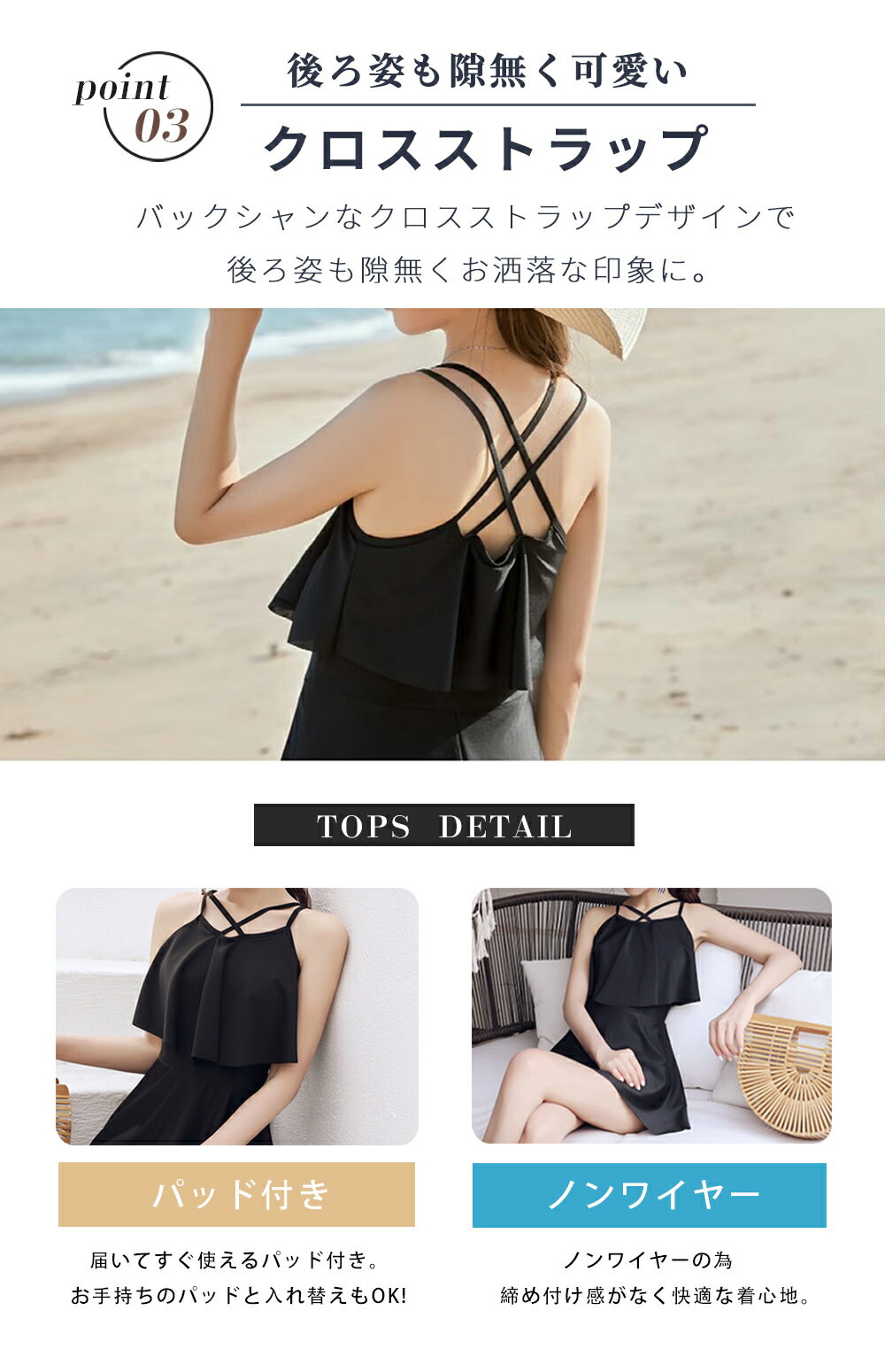 水着 ワンピース 水着 レディース体型カバー 2点セット 2way 体型カバー水着 ぽっちゃり 10 代 20代 30代 ママ水着 バックフリル セクシー シンプル レースアップ オトナ女子 パッド付き 盛れる 可愛い 海 プール