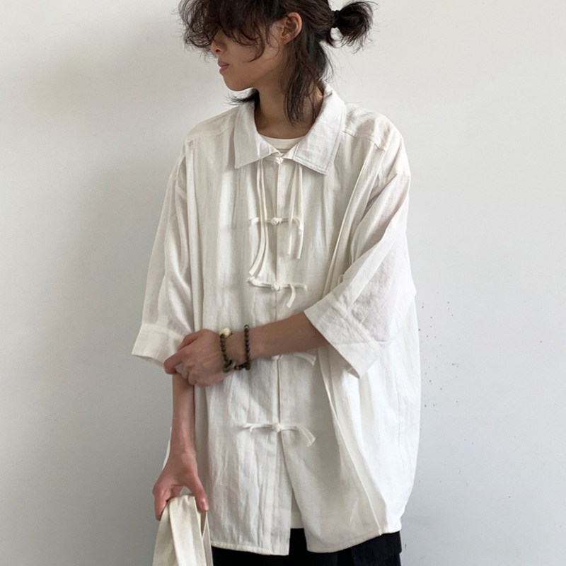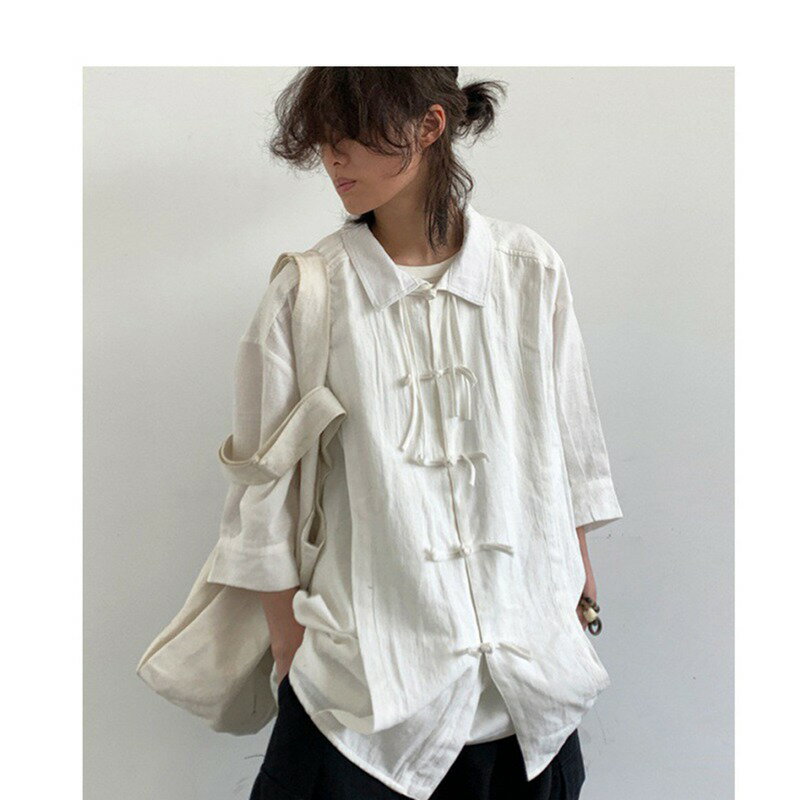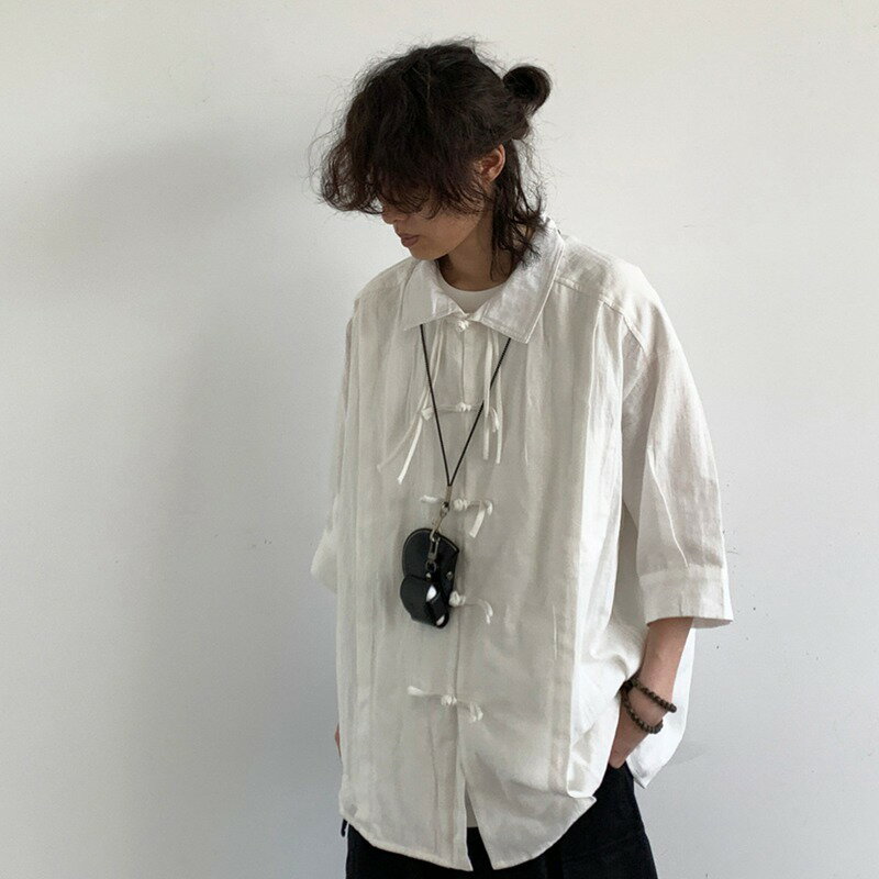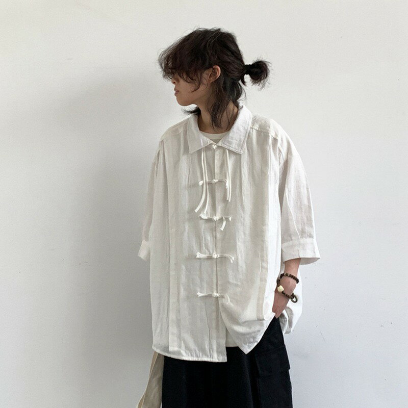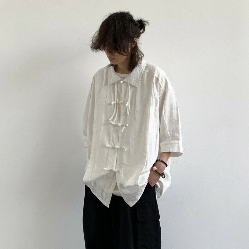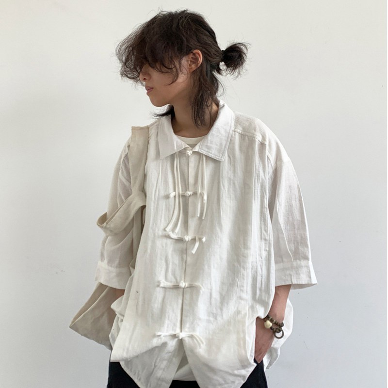 開襟シャツ 7分袖 メンズ チャイナボタン 中華風 綿麻 リンネル 個性印象派 無地 唐装漢服 羽織り ジャケットシャツ 薄手 カジュアル ファッション 通気性 速乾性 動きやすい 春 秋 夏