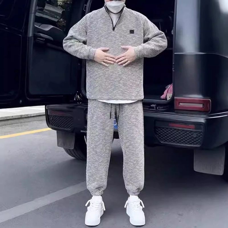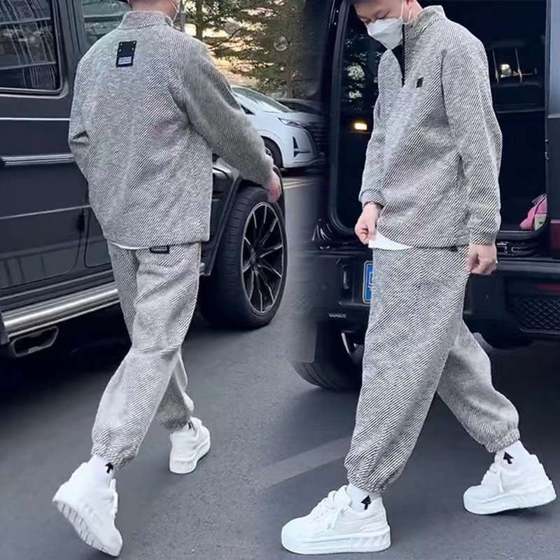 トレーナー ロング Tシャツ メンズ 上下アップ 長袖 ハーフジップ 立襟 男女兼用 上着 カットソー 秋冬 ロングパンツ プルオーバー ベーシック お洒落 パーカー ゆったり 普段着 ストリート系 スウェット