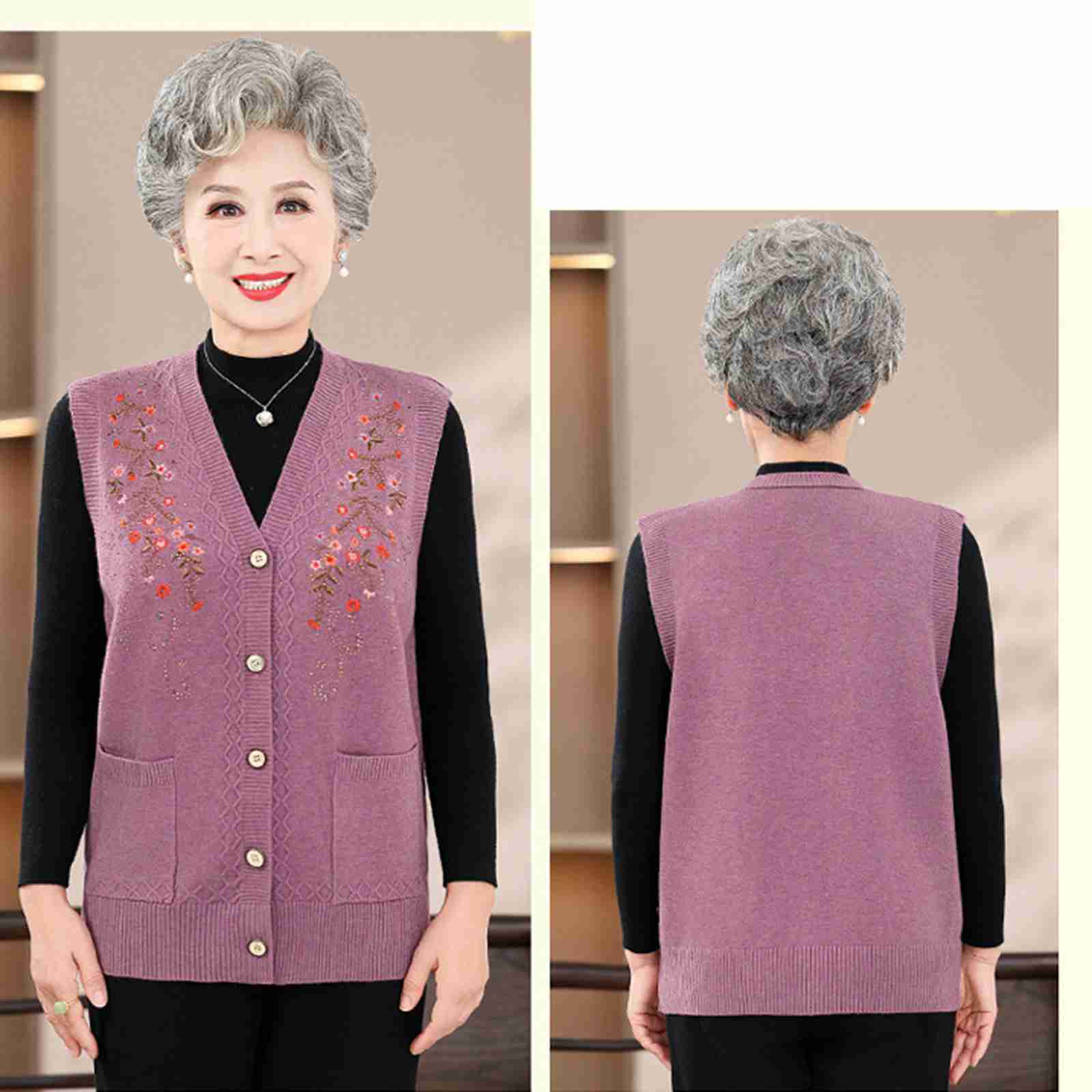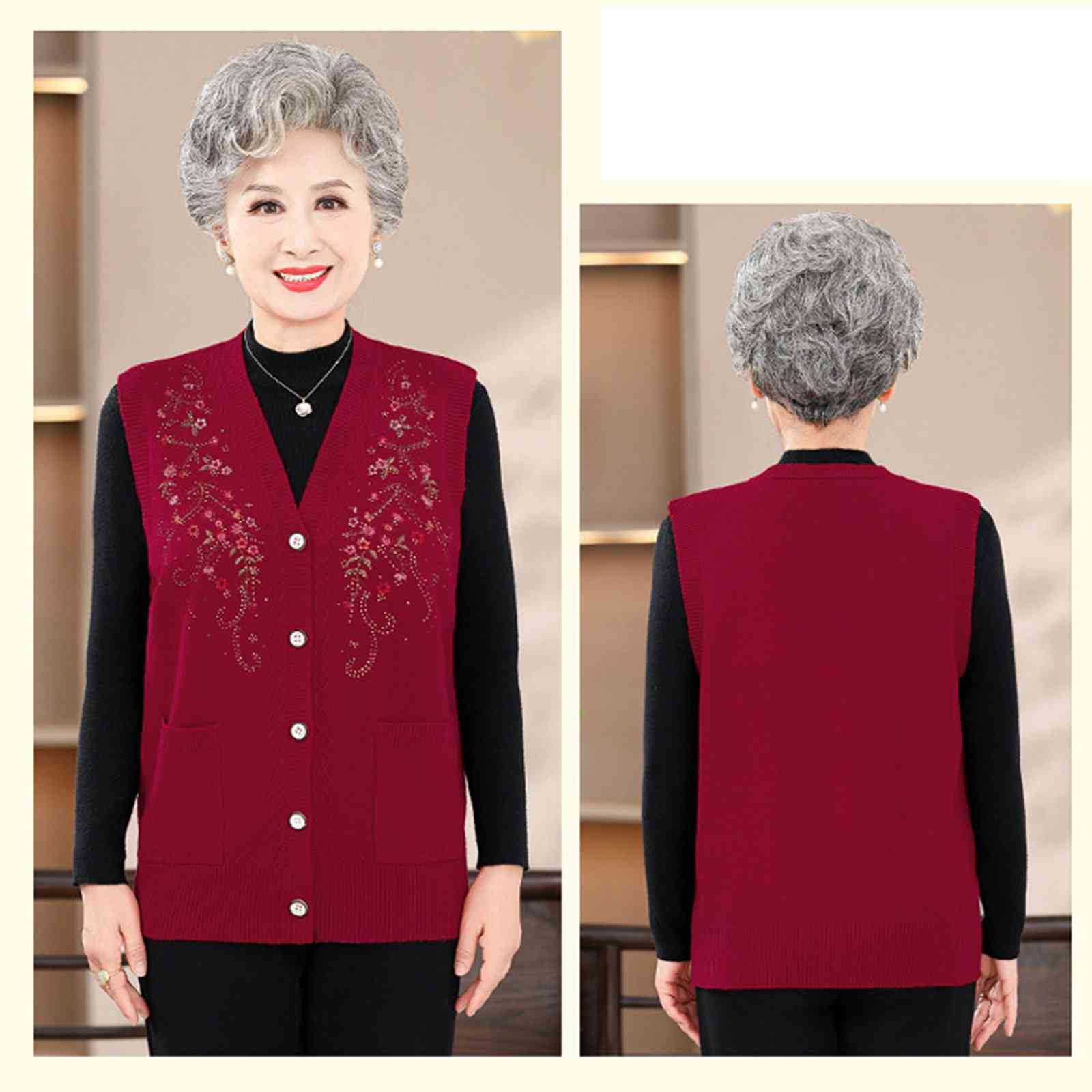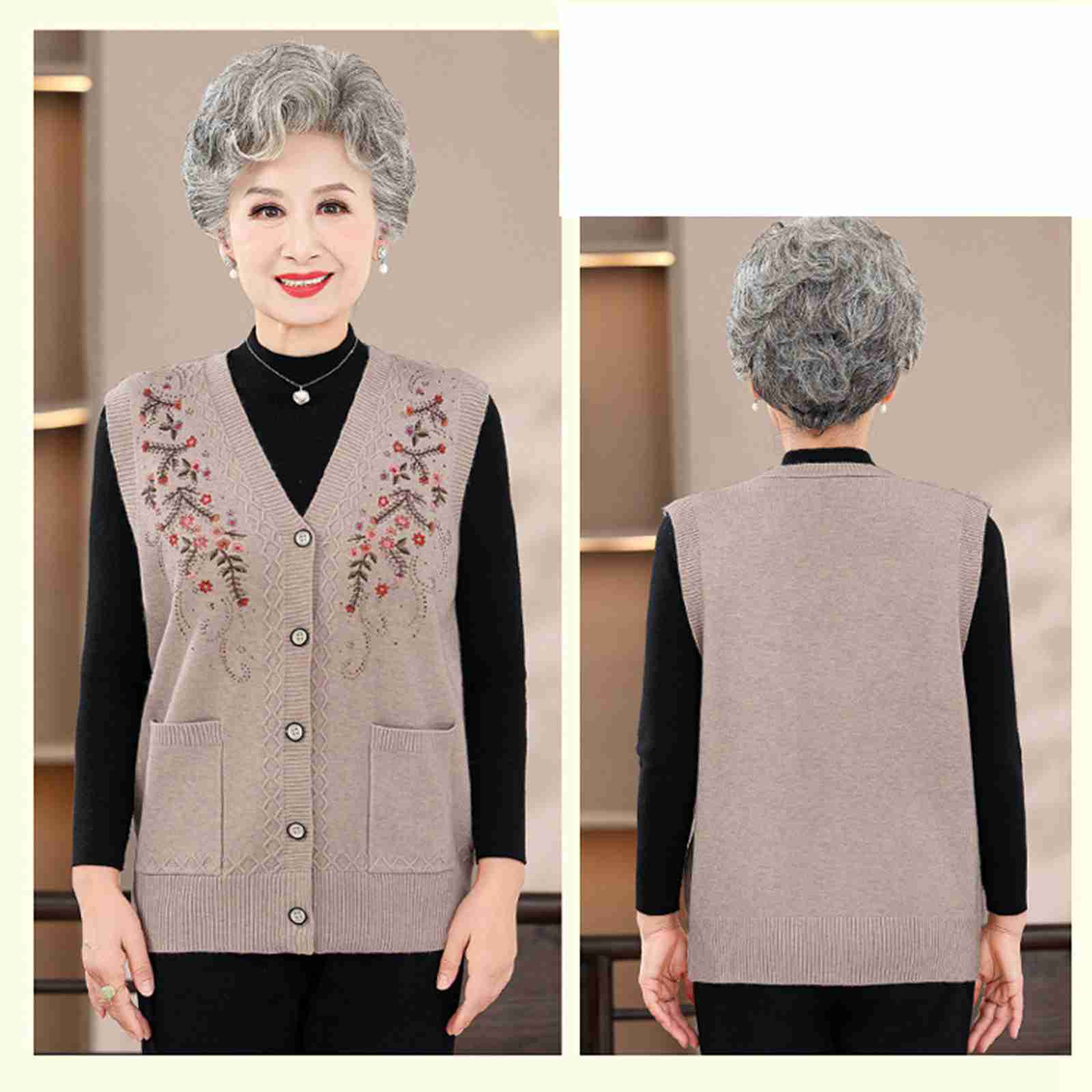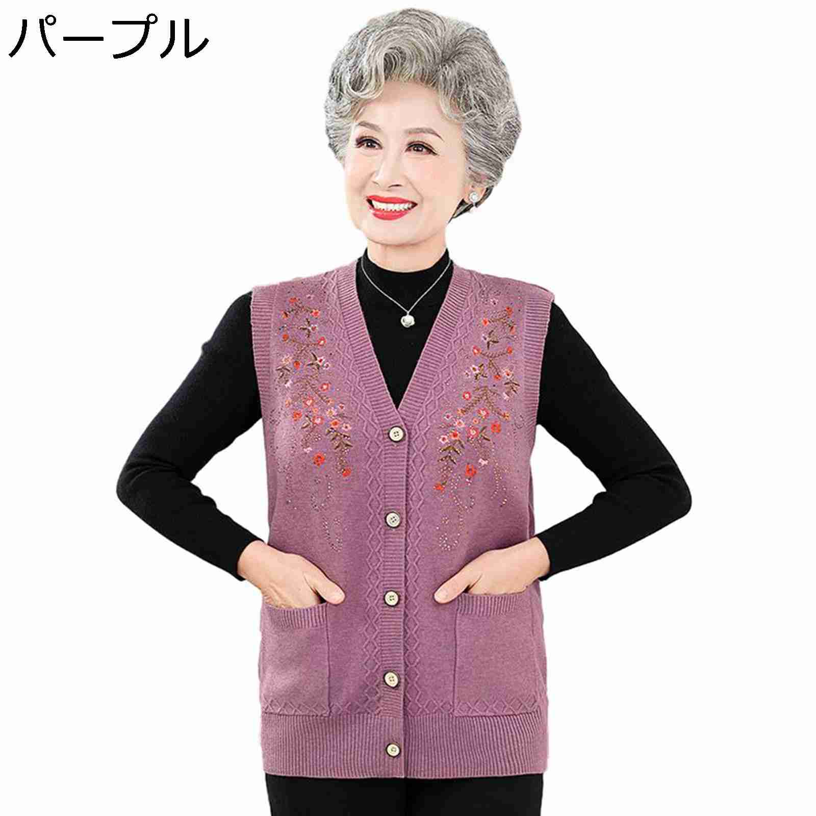 老人ホームで着る服 ベスト レディース カーディガン ニット トップス 保温防寒 アウター インナー ジャケット 前開きボタン ポケット付 高齢者 母の日ギフト おばあちゃんへ ノースリーブ