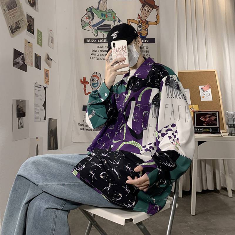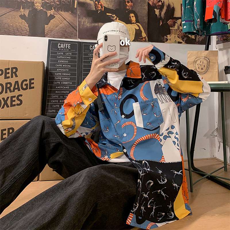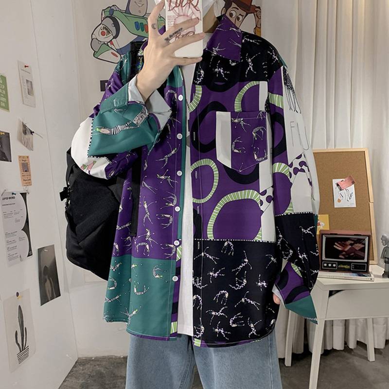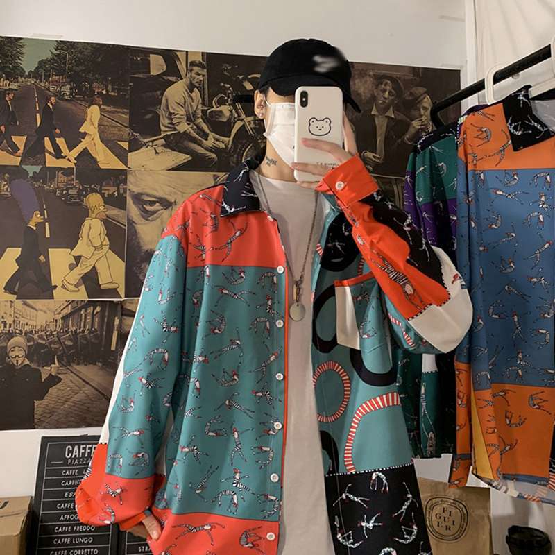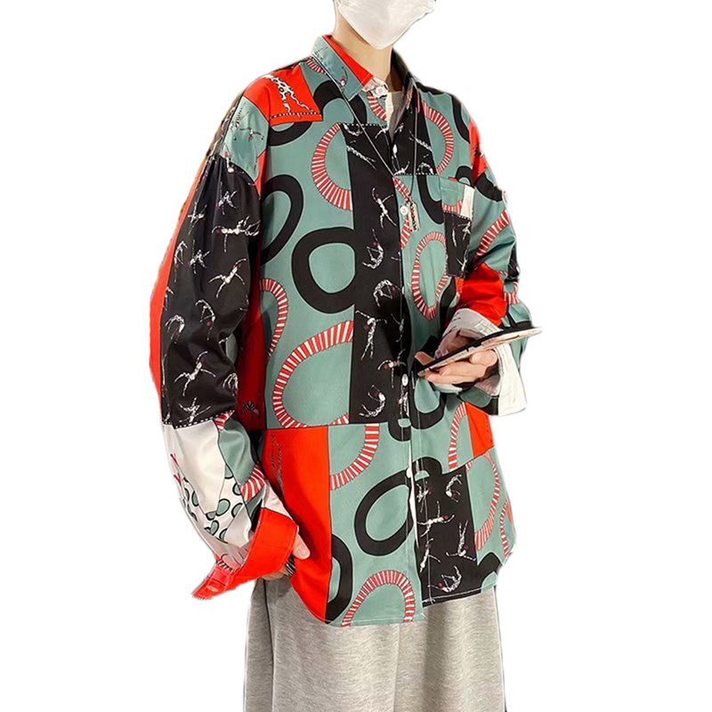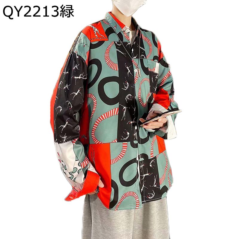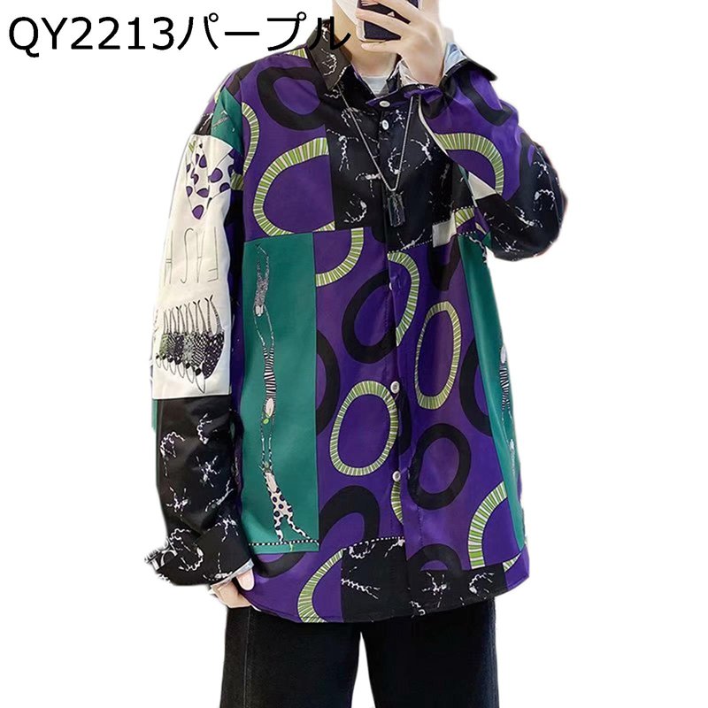 シャツ メンズ ジャケット プリント スプライス パッチワーク 切り替え シャツジャケット シャツコート 長袖 折り襟 やわらか アウトドア アウター シンプル 職場 通勤 春夏秋冬 男性 オシャレ