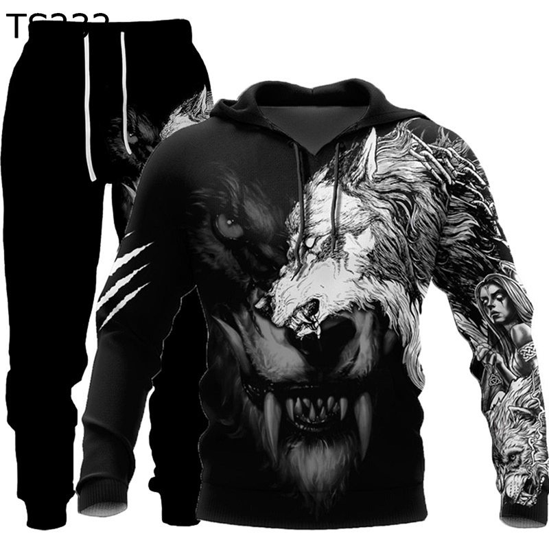 ジャージセット 2点セット メンズ 狼柄 3Dパーカー 春秋服 ゆったり 長袖 アウター スウェット 防寒保温 プルオーバー ベーシック ロングパンツ お洒落 運動 部屋着 普段着 ランニングウェア スポーツ