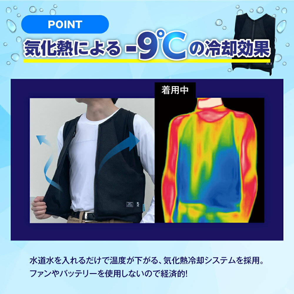 【体感温度を最大マイナス9】FIVES 気化熱ベスト 夏 熱中症対策 暑さ対策に 作業や仕事 アウトドア レジャーにも 空冷服 空調服 空調ウエア ワークウエア ベスト インナー