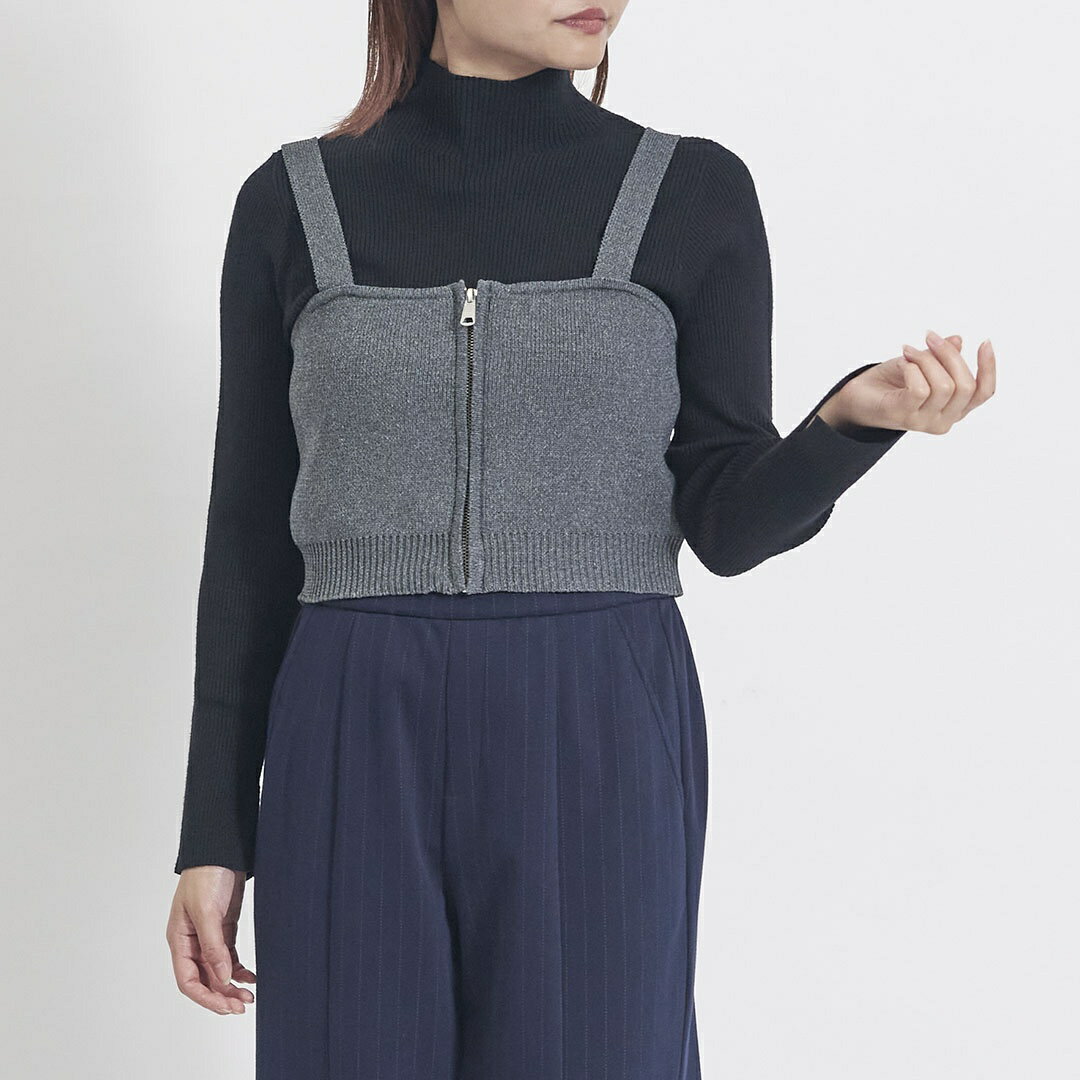 【KEYUCA公式店】ケユカ フロントZIPニットビスチェ [レディース トップス ビスチェ 新作 秋冬 レイヤード 重ね着 ジップ ニット 肩紐 調整可能 トレンド ウォッシャブル 洗える 通販]