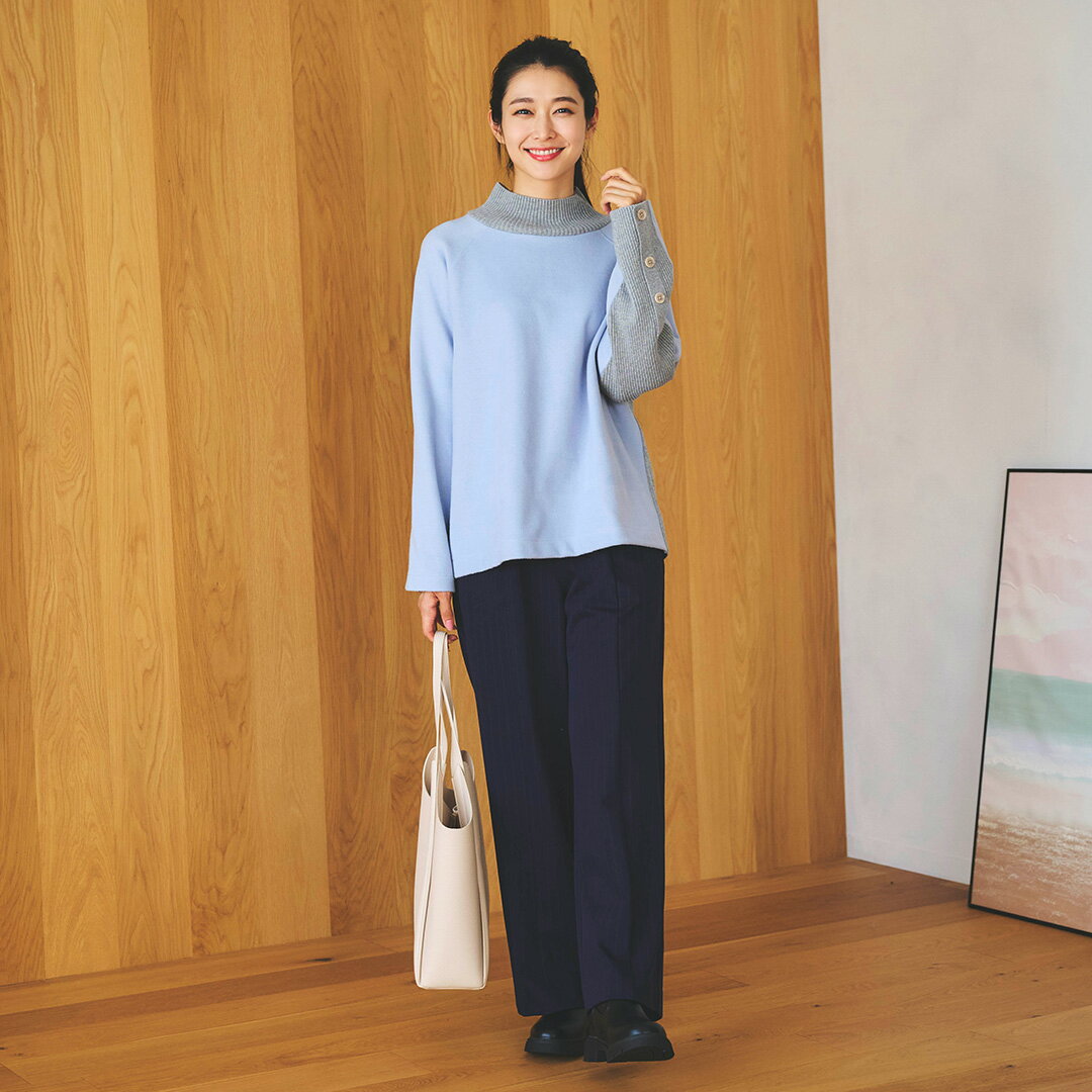 【KEYUCA公式店】ケユカ ウールライクストレッチリブコンビトップス [新作 レディース トップス ジャージ素材 プルオーバー 洗える ウォッシャブル 通販]