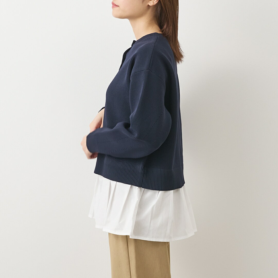 【KEYUCA公式店】ケユカ コンビペプラムニットカーディガン [レディース トップス ボタン取り外し パールボタン シンプル おしゃれ 着回し]