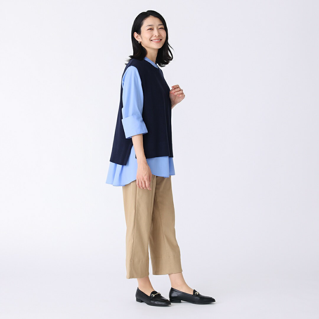 【KEYUCA公式店】ケユカ 【すごナノ撥水】バックフレアベーシックシャツ [レディース トップス 防汚 撥水 ノーカラー 華奢見え オールシーズン シンプル]【グッドプライス】