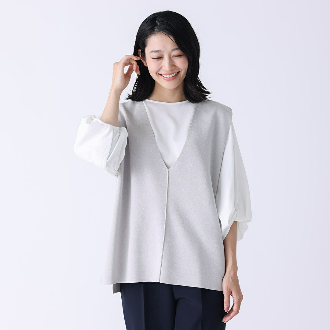 【KEYUCA公式店】ケユカ Vネックニットベスト [レディース トップス ベスト ニット Vネック 春 レイアード 重ね着 ダンブル乾燥可能 毛玉になりにくい きれいめ カジュアル シンプル おしゃれ 30代 40代 50代 洗える ウォッシャブル 通販]