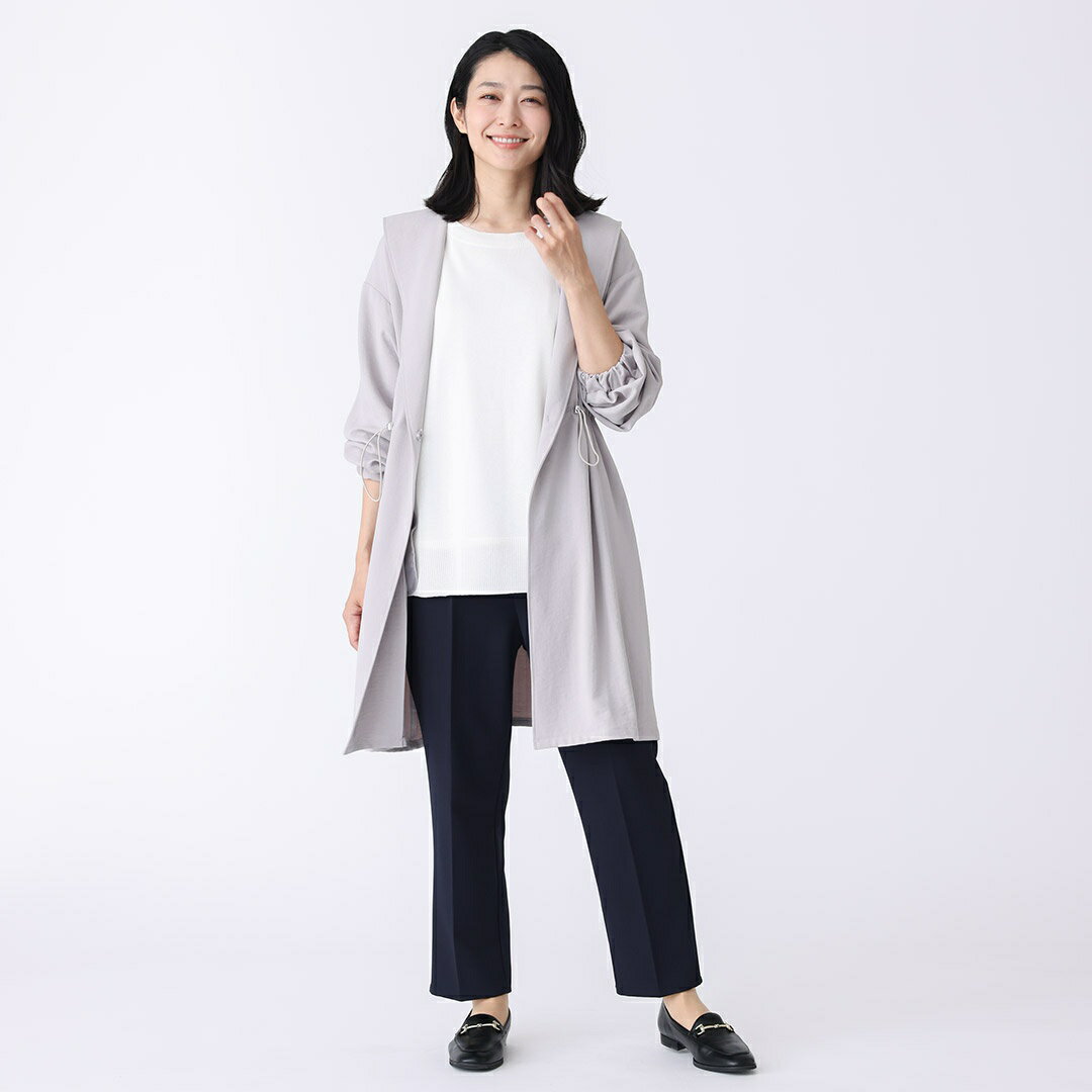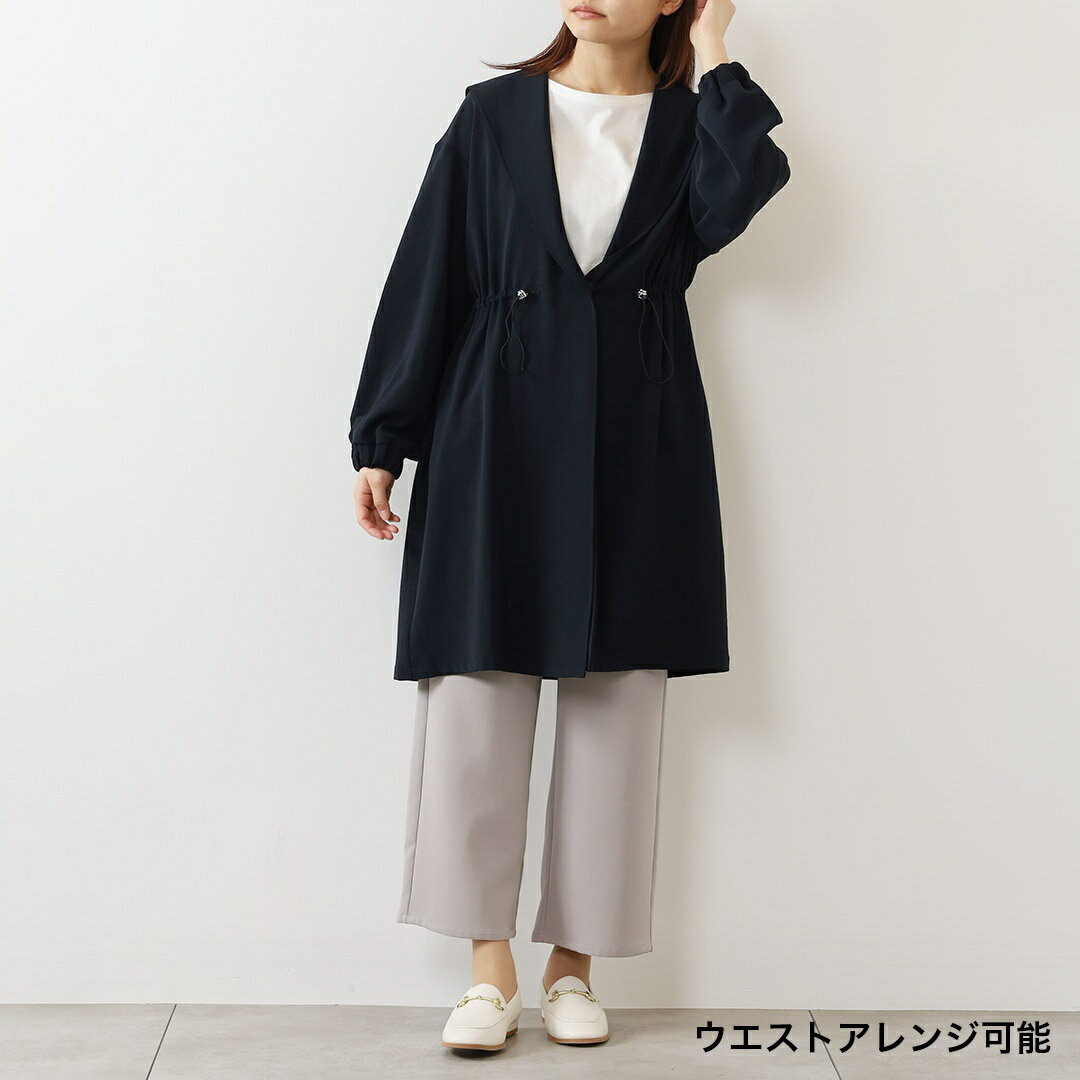 【KEYUCA公式店】ケユカ カルゼワッシャーライトガウンコート レディース アウター コート ガウン フード付き ストレッチ スタイルアップ おしゃれ 通勤 お出かけ 30代 40代 50代 洗える ウォッシャブル 通販]