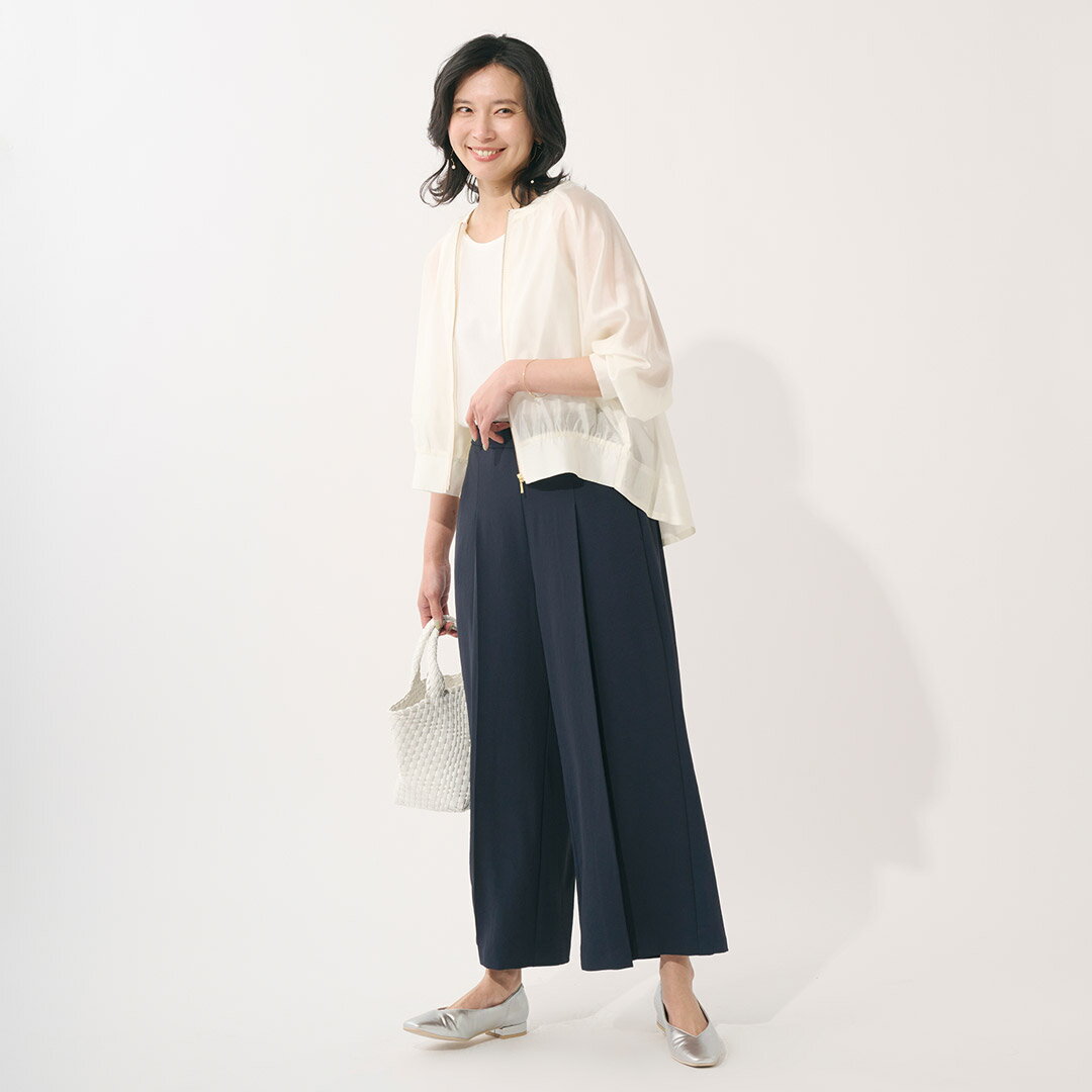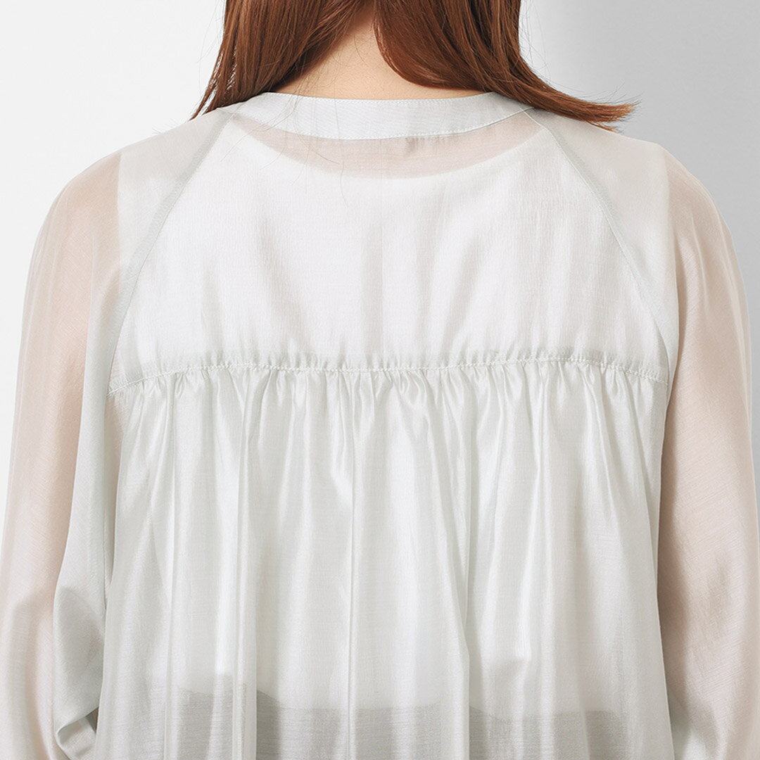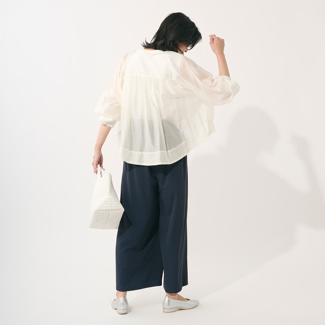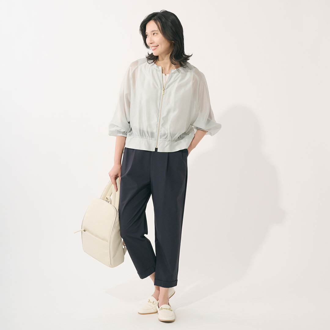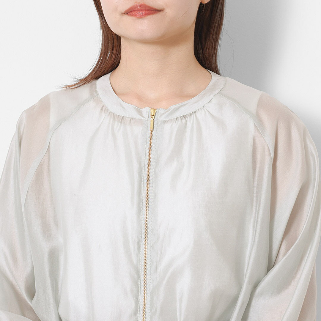 【KEYUCA公式店】ケユカシルキーシアーバックギャザーブルゾン[レディース アウター ブルゾン シアー ギャザー 羽織 華やか 光沢感 体型カバー おしゃれ 30代 40代 50代 洗える ウォッシャブル 通販]