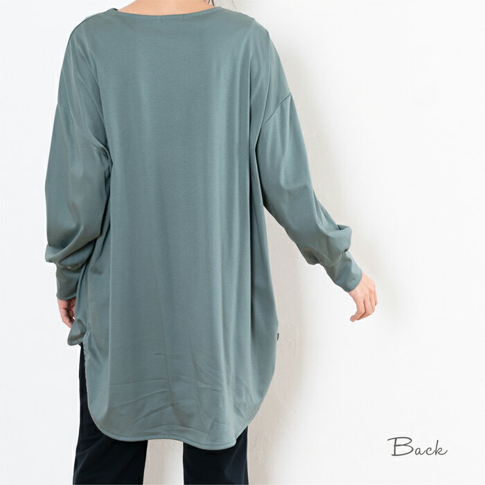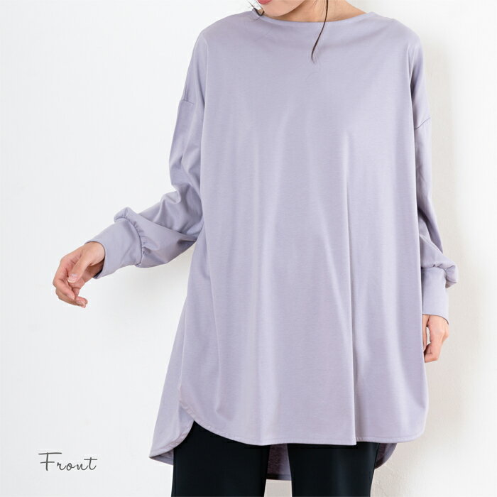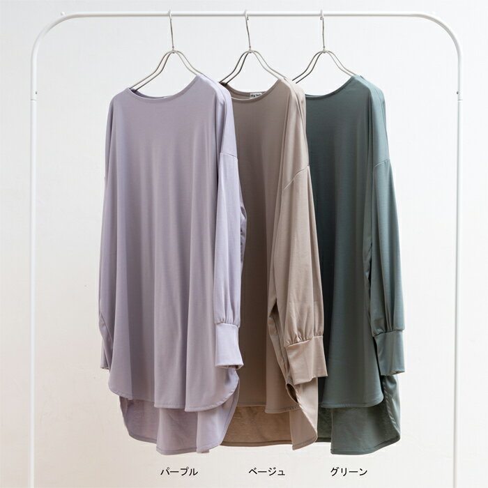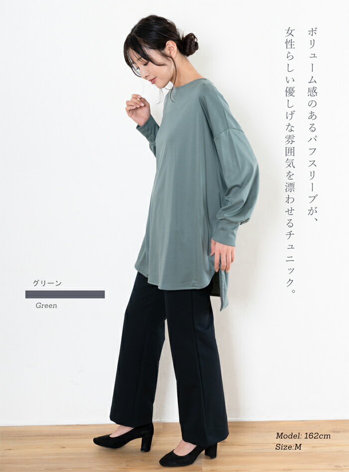 レディース スーピマ綿 パフスリーブ チュニック 日本製 着後レビューでクーポン☆ トップス カットソー 長袖 オーバーサイズ ドロップショルダー 無地 シンプル 紫 パープル ベージュ 緑 グリーン 春 秋 冬 ギフト プレゼント