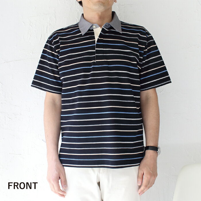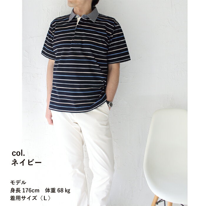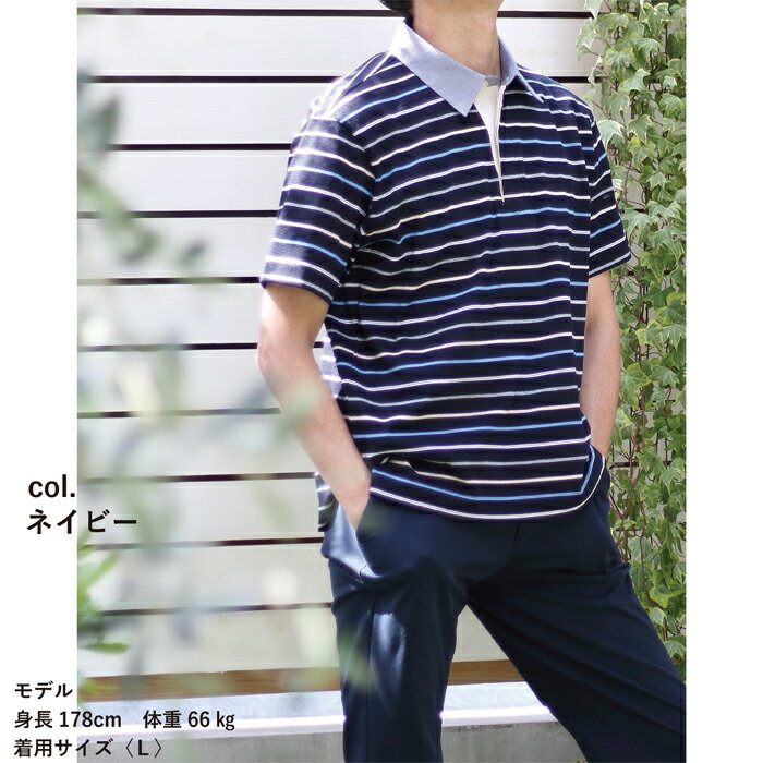 ポロシャツ メンズ ボーダー 半袖 ゴルフ おしゃれ 贈り物 Tシャツ リモートワーク ビジネスカジュアル ボタン 鹿の子 編み 紳士 日本製 男性 30代 40代 50代 60代 紺 ネイビー グレー エンジ ギフト プレゼント