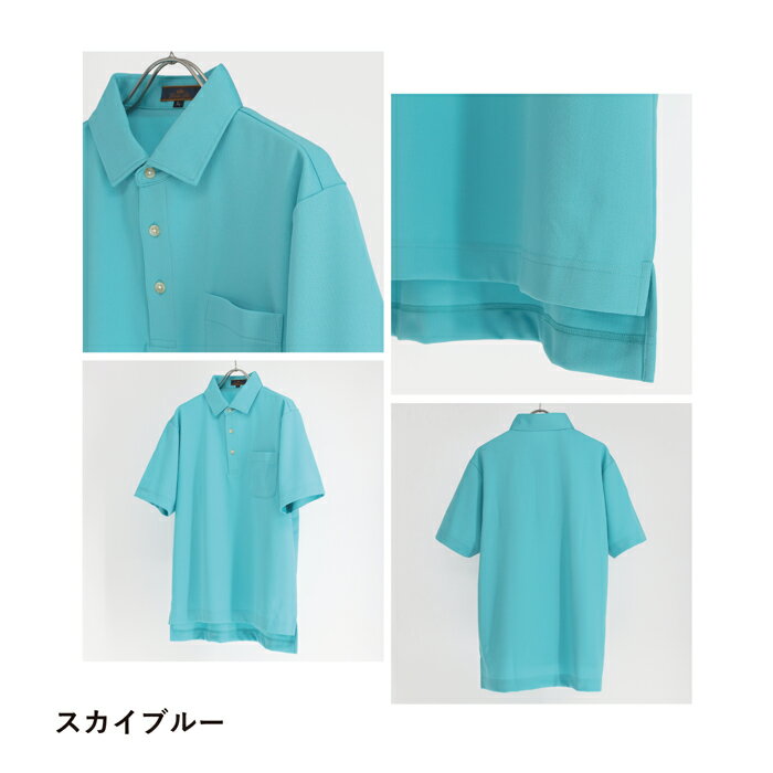 ポロシャツ メンズ 半袖 ゴルフ 無地 シンプル 定番 おしゃれ 贈り物 スポーツ ポケット シニア ポケット付き ゴルフウェア 日本製 紳士 男性用 通気性 40代 50代 60代 青 黄色 紺 ブルー イエロー ネイビー ギフト プレゼント