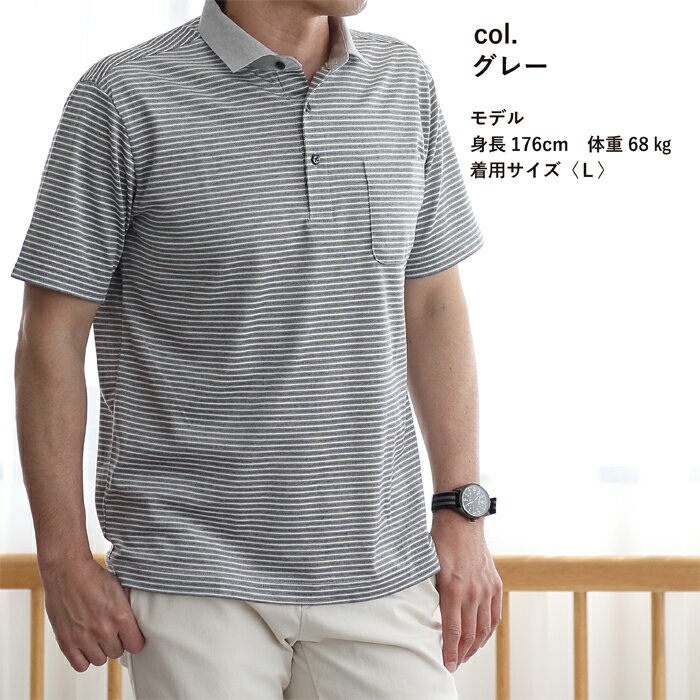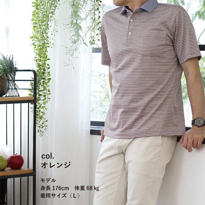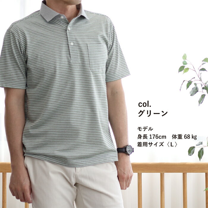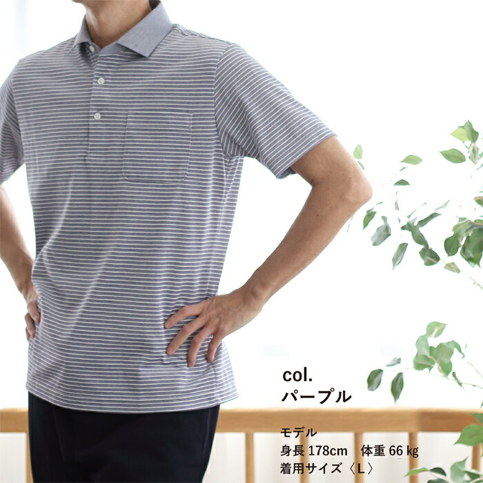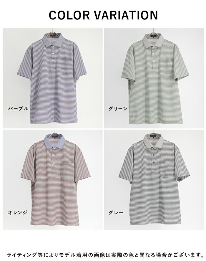 ポロシャツ メンズ ボーダー 半袖 鹿の子 吸水速乾 ゴルフ おしゃれ 贈り物 スポーツ インナー カジュアル ビジネス ゴルフウェア 日本製 紳士 男性用 40代 50代 60代 70代 パープル 紫 グリーン 緑 オレンジ グレー ギフト プレゼント