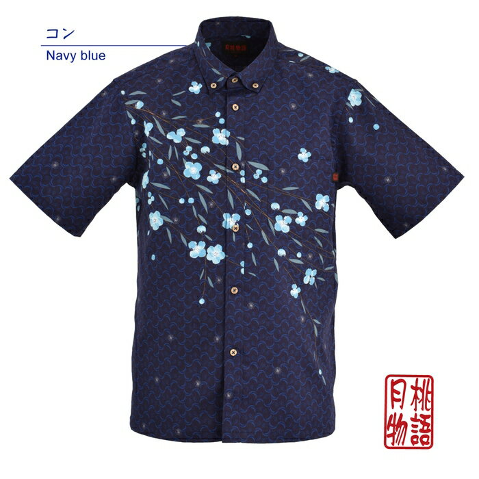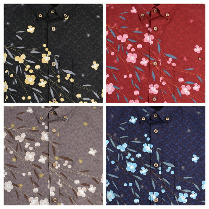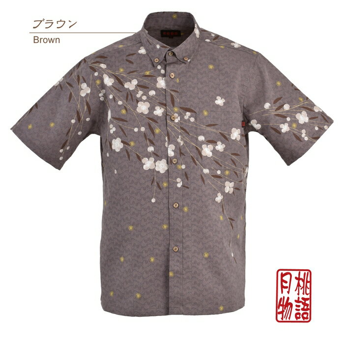 かりゆしウェア かりゆしシャツ メンズ 月桃物語 イジュ柄 綿麻ポリエステル ボタンダウン UVカット 抗菌防臭 汗を吸収発散 清涼感 沖縄 アロハシャツ 半袖シャツ 柄シャツ 和風 琉球和柄 ビジネス リゾート ウエディング 結婚式 男性用 ギフト プレゼント