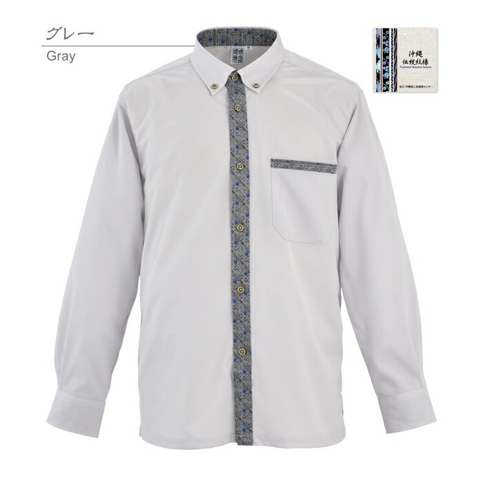 かりゆしウェア かりゆし シャツ メンズ ブーゲン柄紋様使い ボタンダウン 沖縄 アロハシャツ 長袖シャツ 柄シャツ ビジネス リゾート ウエディング 結婚式 男性用 ギフト プレゼント
