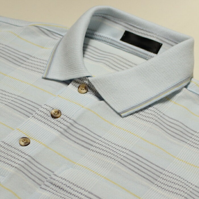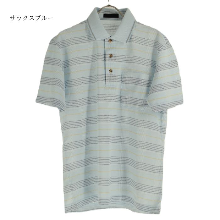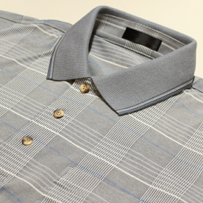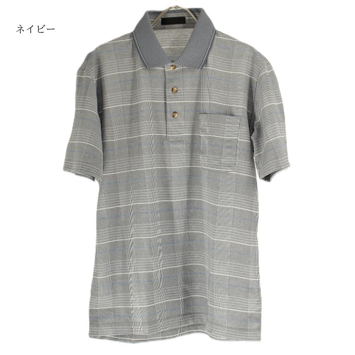 ポロシャツ メンズ 半袖 日本製 鹿の子 格子柄 ポロ衿 胸ポケット さらっとした肌触り 綿ポリエステル 匠木綿? 春 夏 秋 お出かけ 旅行 おしゃれ カジュアル 紳士 シニア 男性 50代 60代 70代 80代 サックス ネイビー SMLサイズ ギフト プレゼント 贈り物