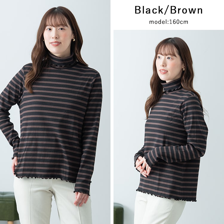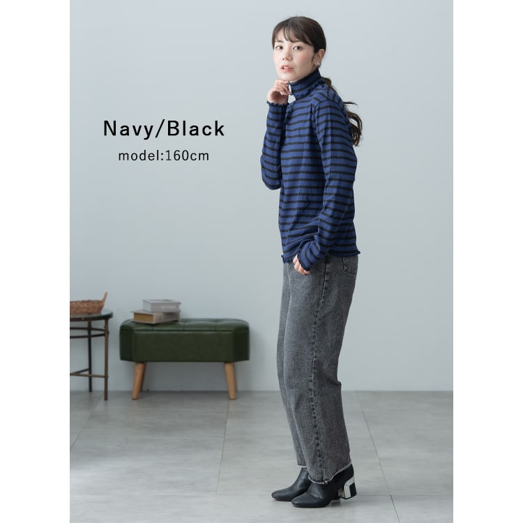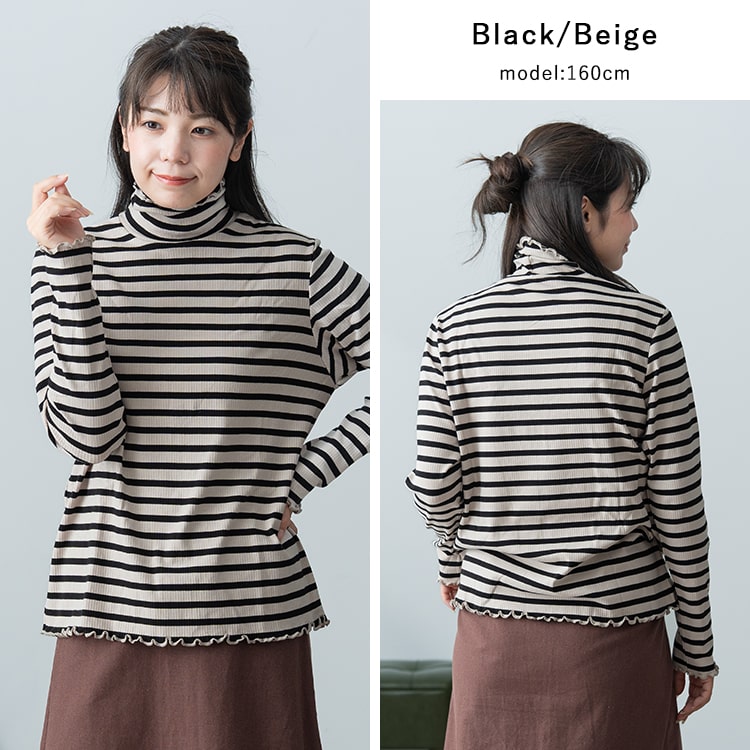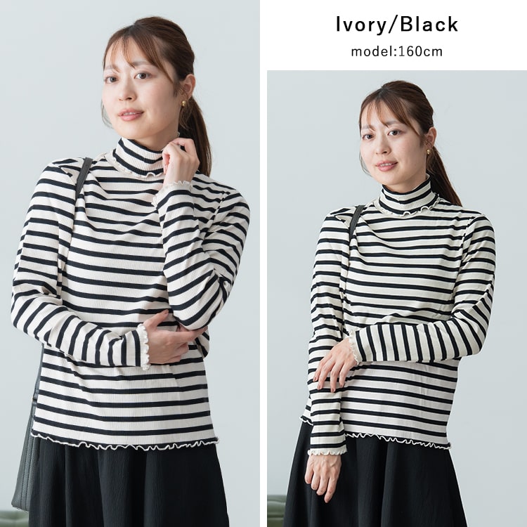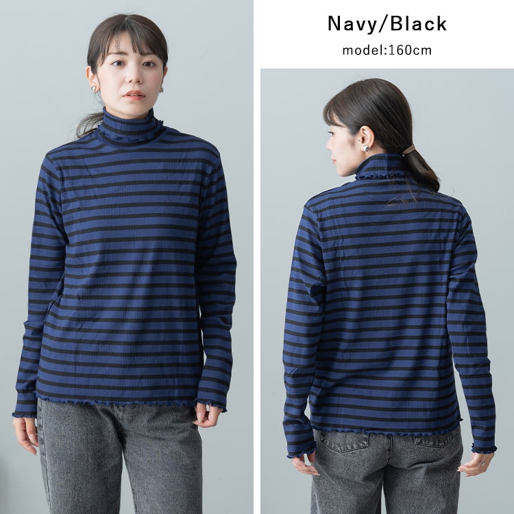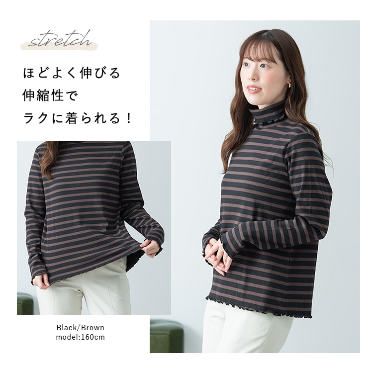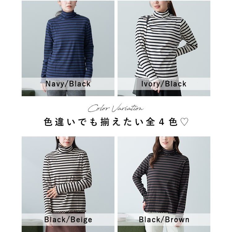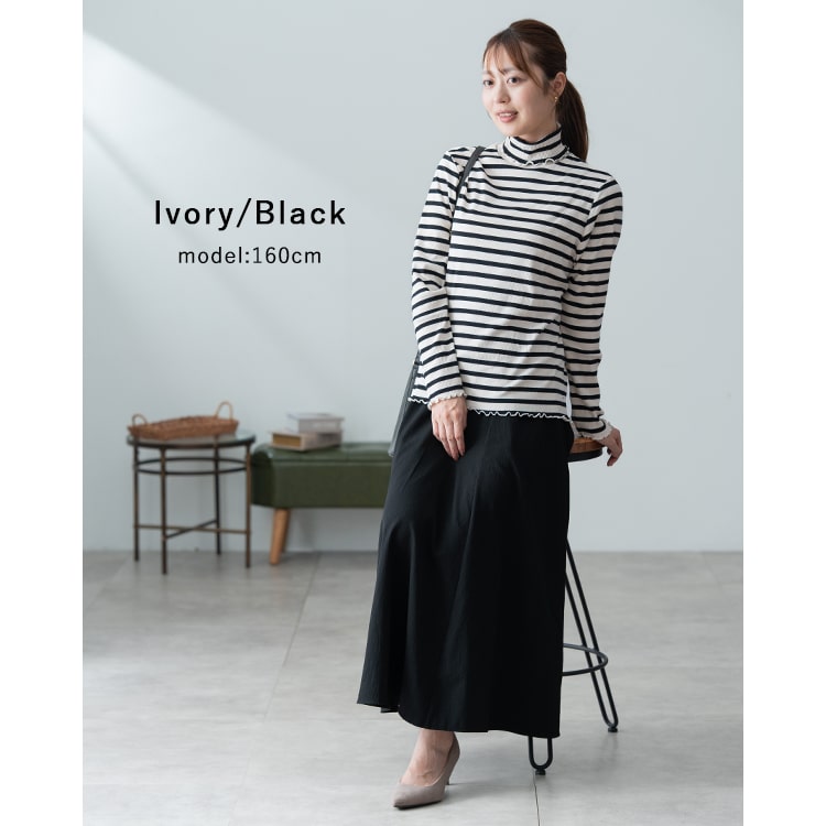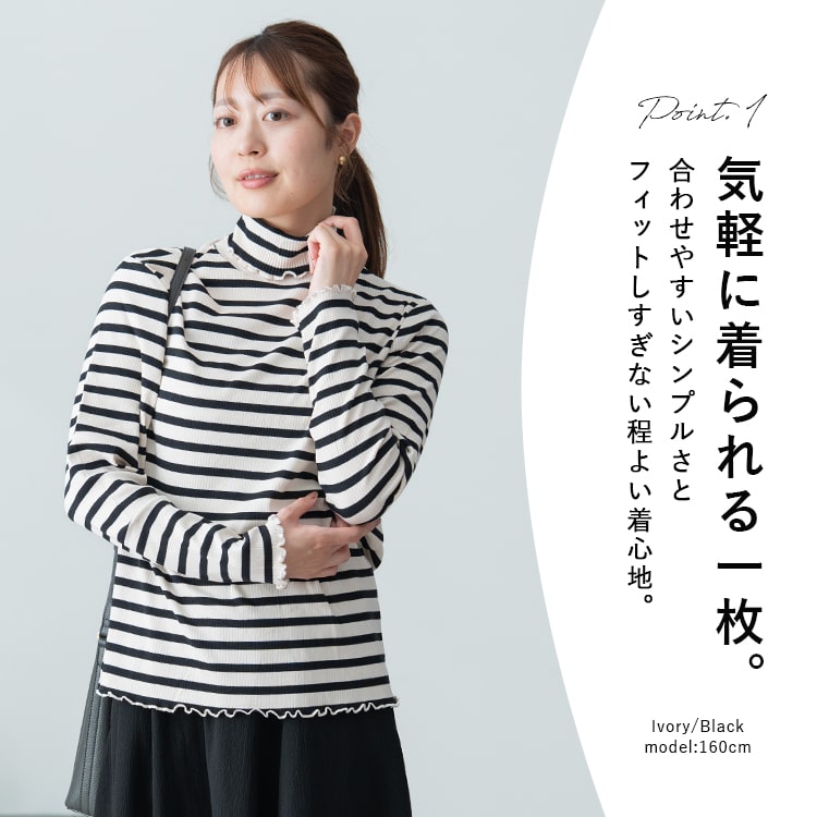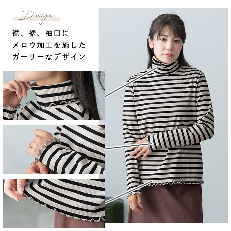 【Max300%ポイントバック】カットソー テレコリブ レディース 長袖 ハイネック tシャツ 綿 コットン ロンT タートルネック メロー フリル かわいい おしゃれ 重ね着 シンプル 大人 M L 秋 冬