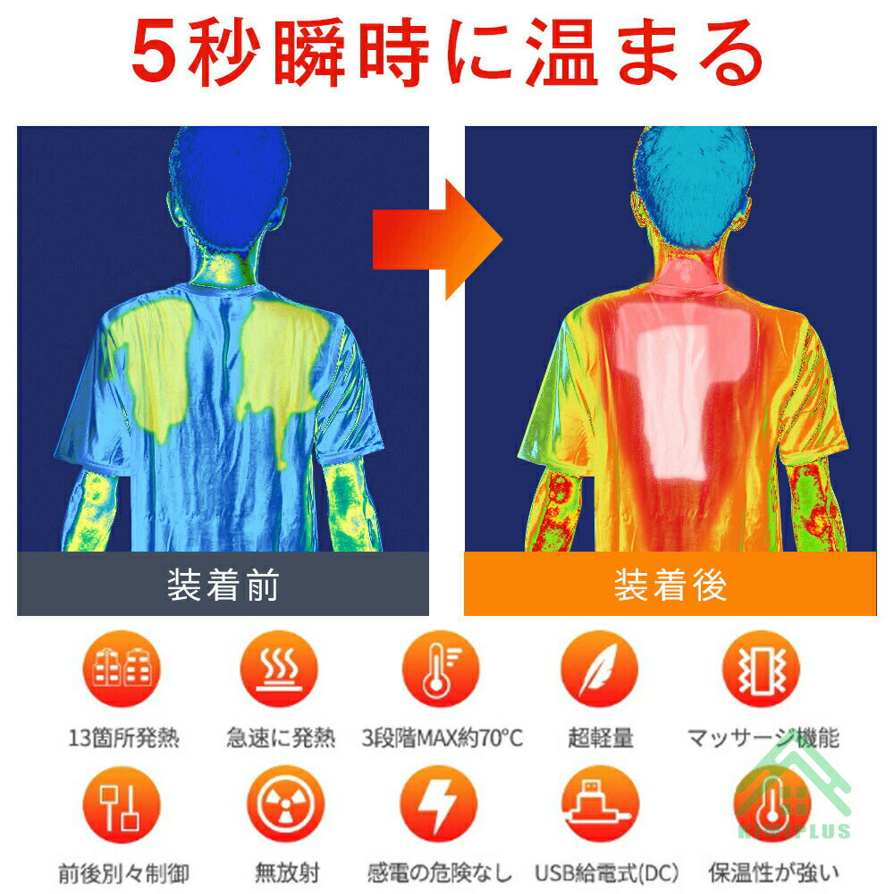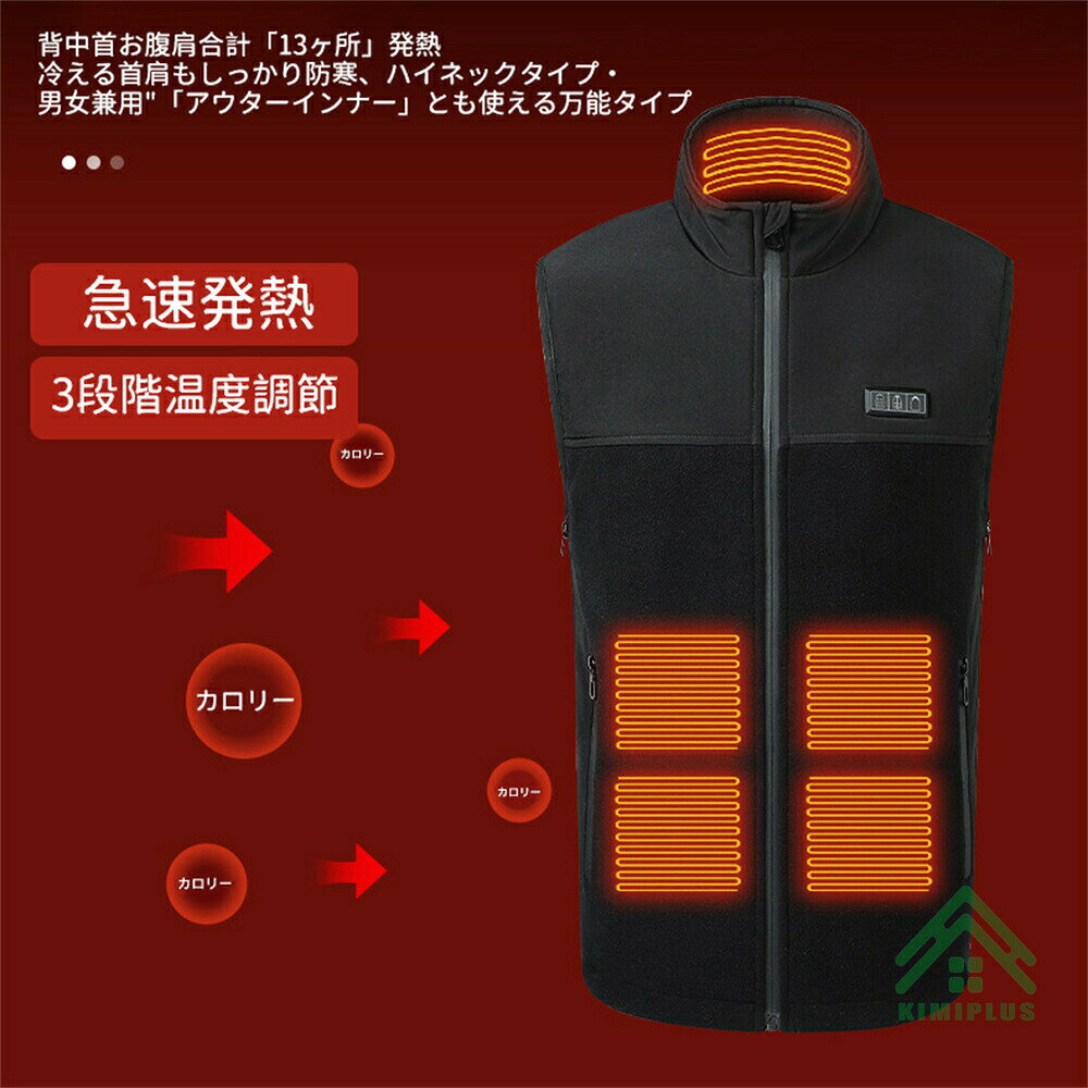 【スーパーSALE限定50%OFF】 電熱ベスト 日本製 繊維ヒーター 13エリア発熱 モバイルバッテリー ベスト USB 3段階調温 3つボタンで独立制御 アウトドア 洗濯可能 水洗い 防寒対策 男女兼用 メンズ レディース 軽い 薄型 プレゼント 登山 釣り アウトドア 通勤 送料無料