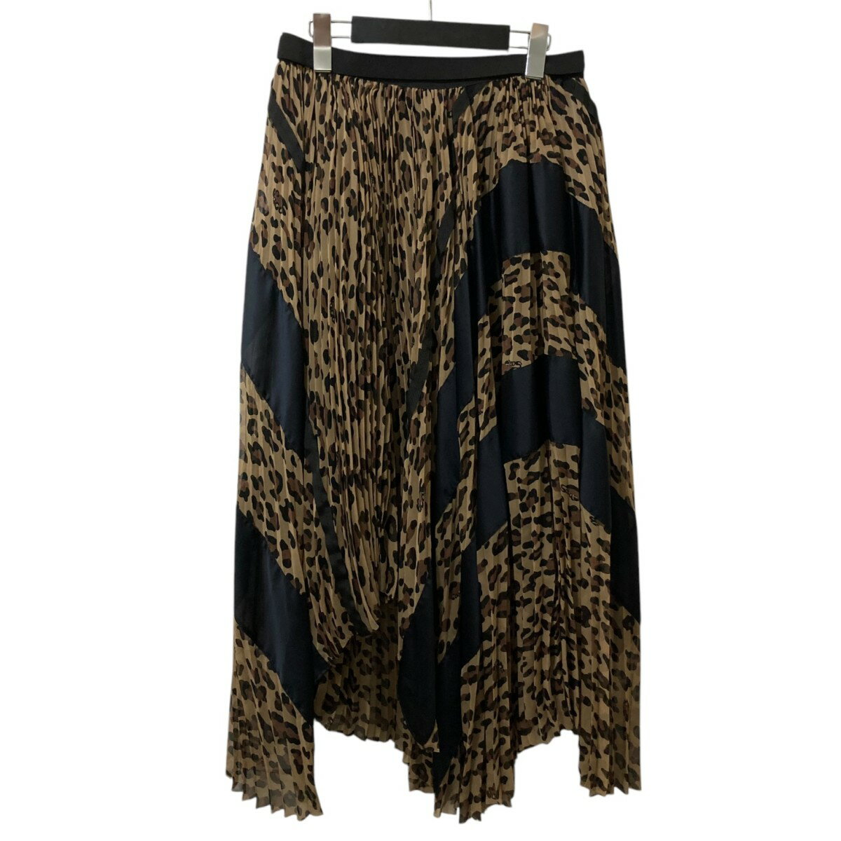 【中古】sacaiアニマル柄 プリーツラップスカート 19-04553 ベージュ×ブラック サイズ:2【価格見直し】