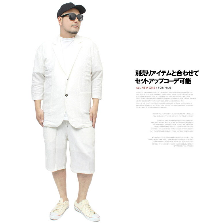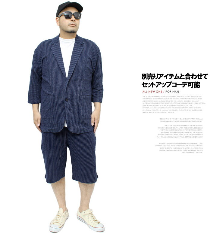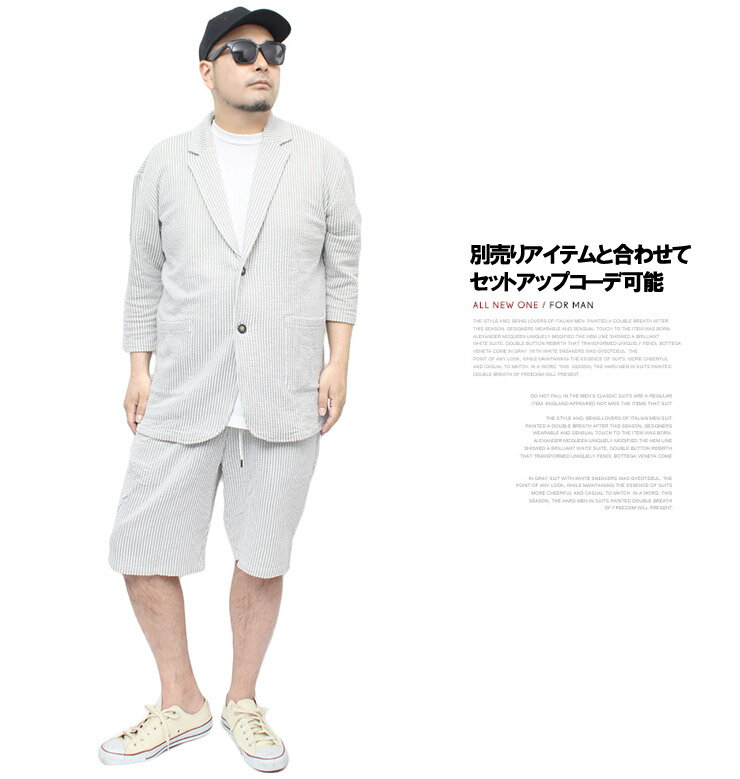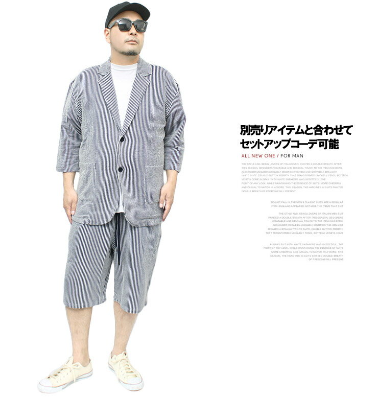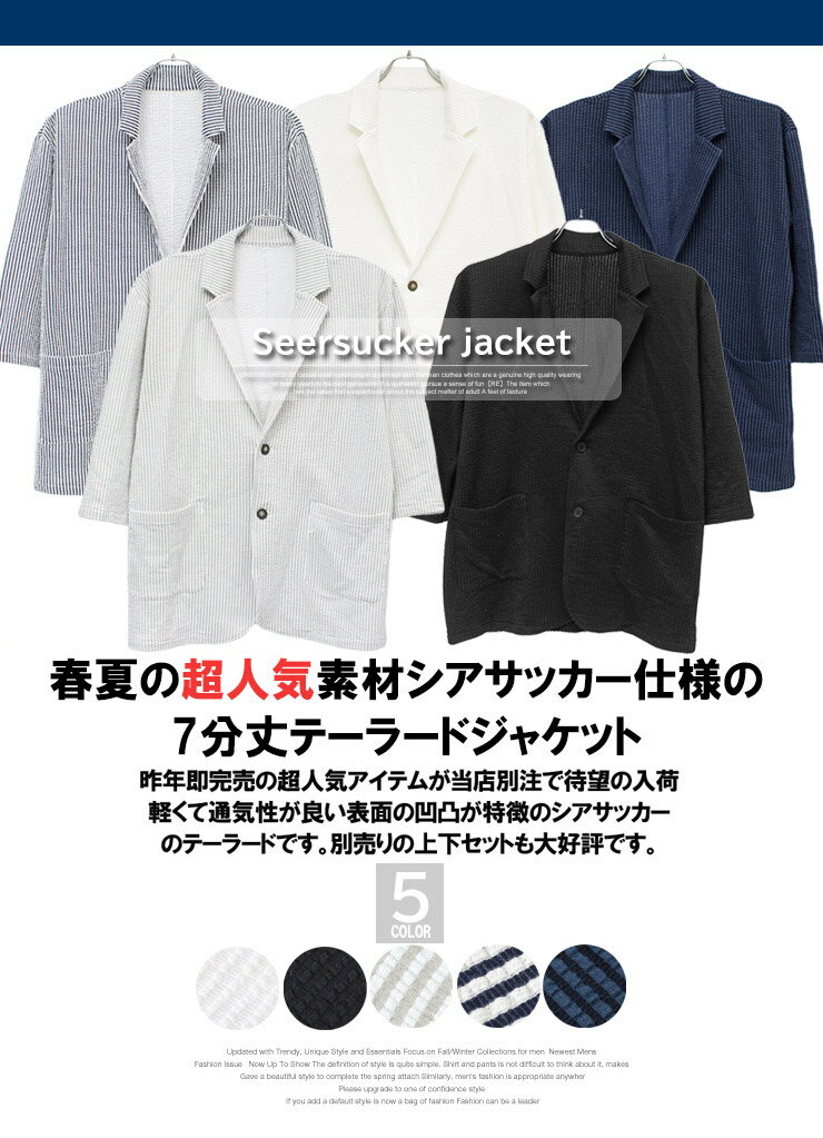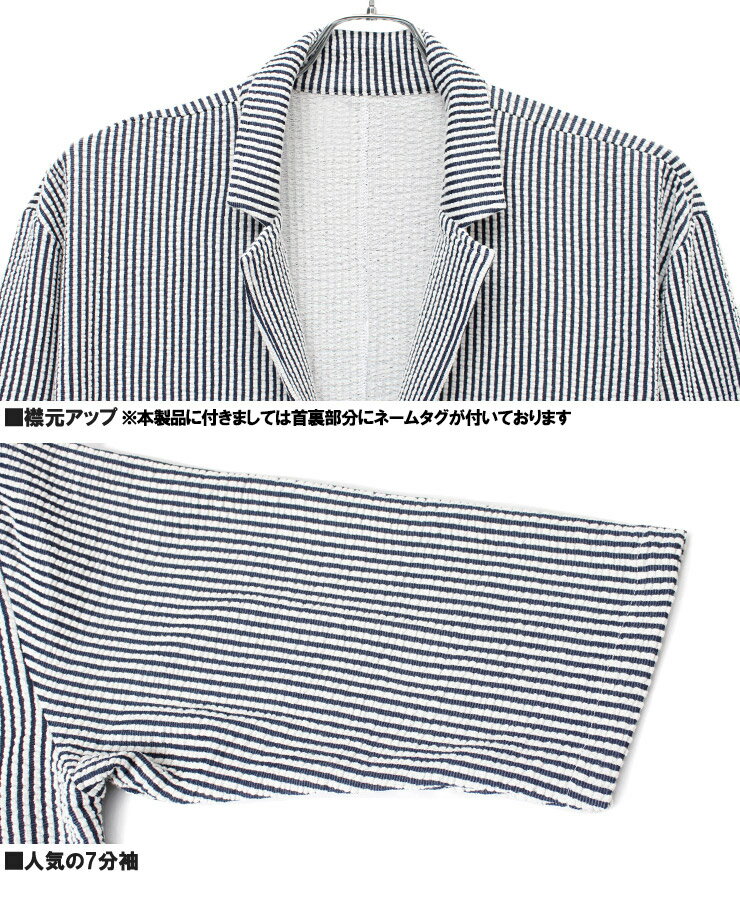 送料無料 七分袖 テーラードジャケット メンズ 大きいサイズ シアサッカー 無地 ストライプ ストレッチ サマージャケット テーラード ジャケット サマー ビジネス 伸縮 7分袖 7分丈 通気性 キレイめ 無地 白 青 キレイめ ワークマン プラス