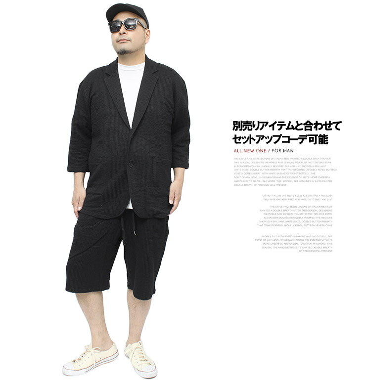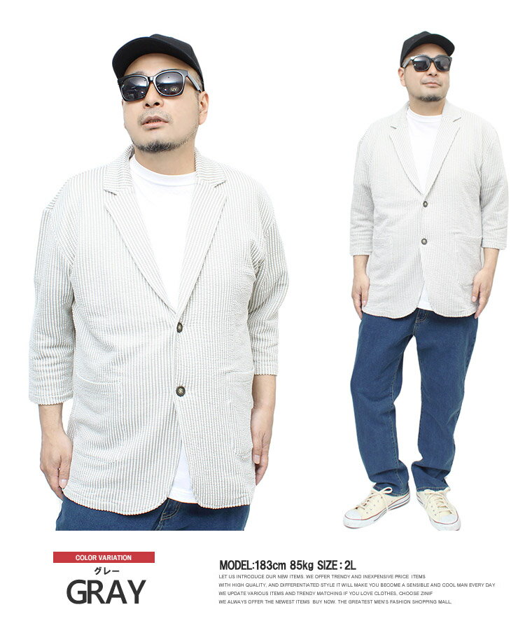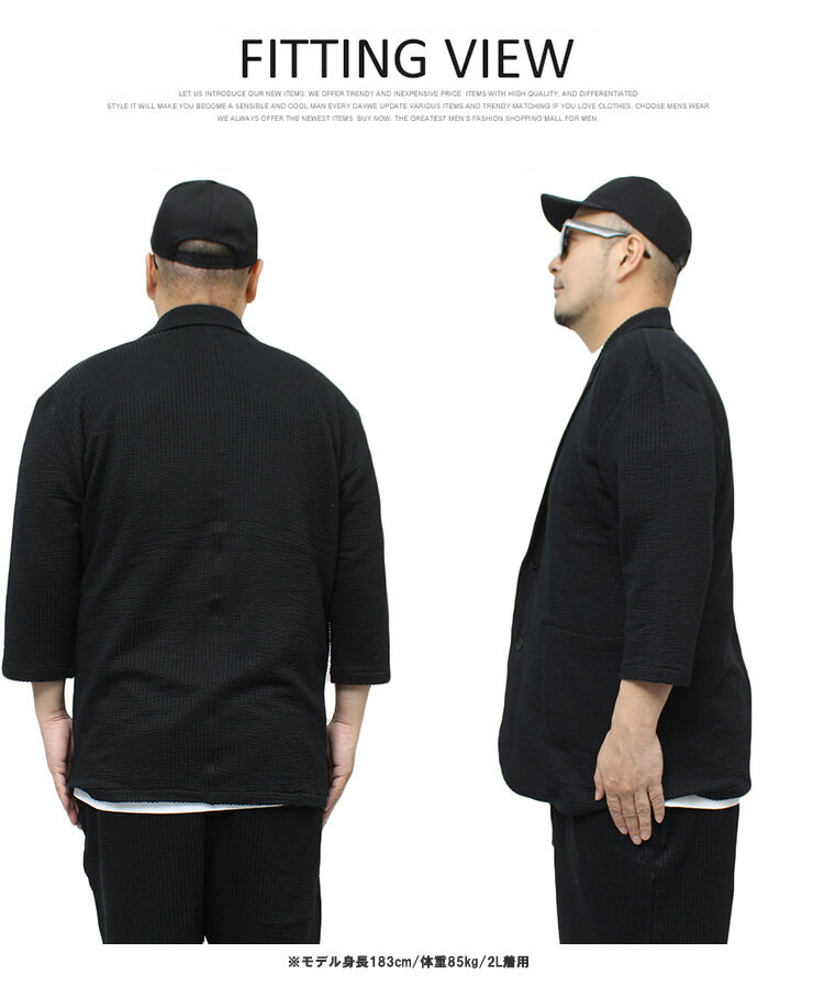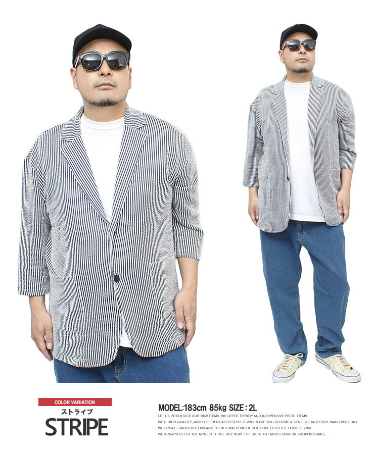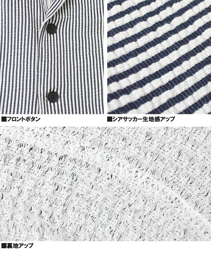 送料無料 七分袖 テーラードジャケット メンズ 大きいサイズ シアサッカー 無地 ストライプ ストレッチ サマージャケット テーラード ジャケット サマー ビジネス 伸縮 7分袖 7分丈 通気性 キレイめ 無地 白 青 キレイめ ワークマン プラス