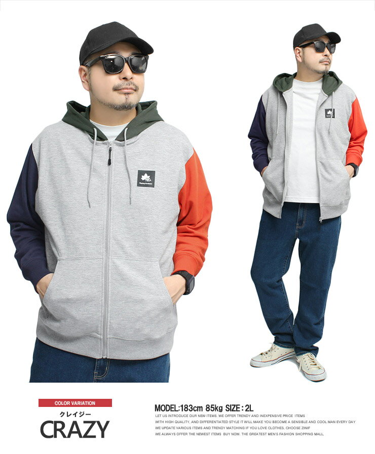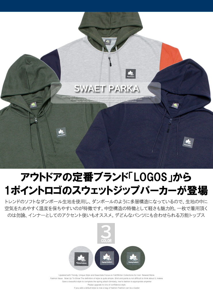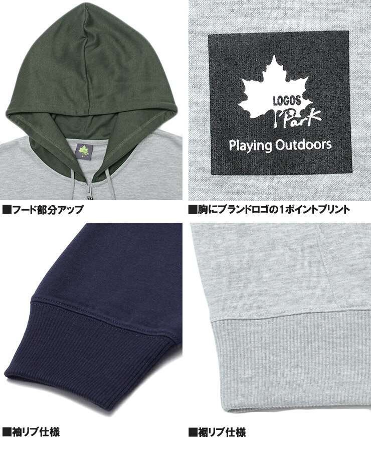 送料無料 LOGOS PARK(ロゴス パーク) パーカー メンズ 大きいサイズ 薄手 ロゴ プリント ジップアップ ダンボール スウェット スエット フルジップ トレーナー ブルゾン ジャケット ブランド アウトドア ワークマン プラス サイズ