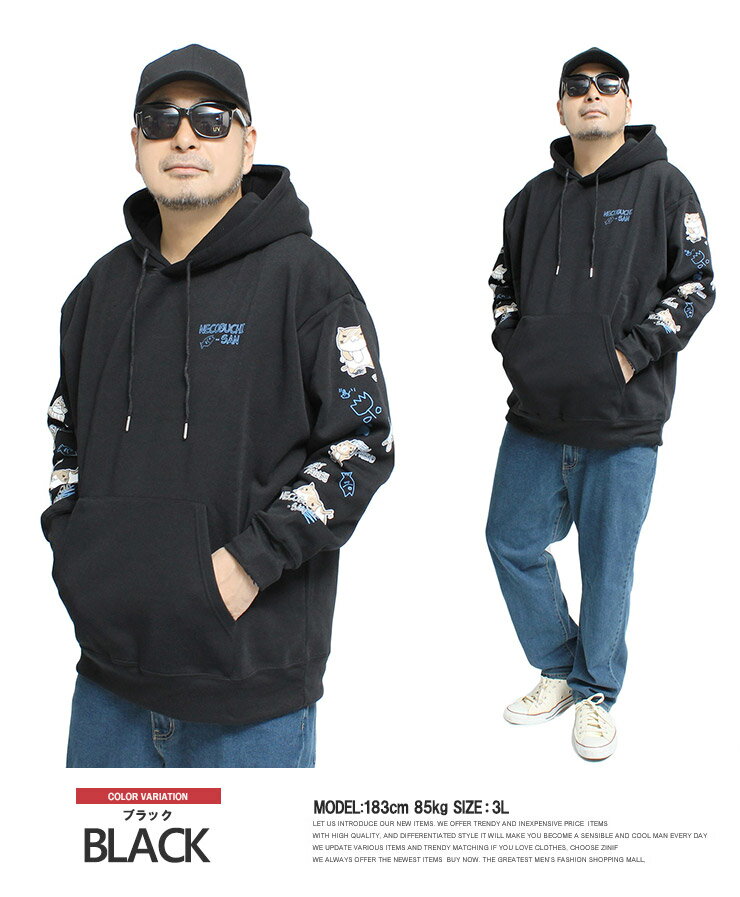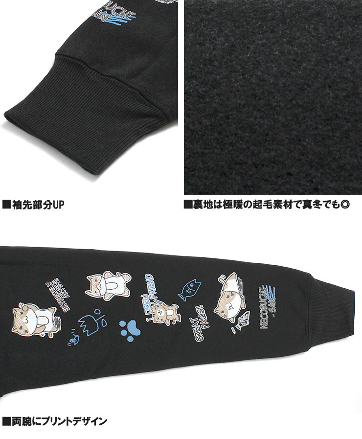 送料無料 ねこぶちさん(猫渕さん) スウェット メンズ 大きいサイズ 裏起毛 バックプリント クルーネック トレーナー 猫 ネコ にゃんこ かわいい 猫柄 猫好き ペット トップス スウェットトレーナー あったか 暖かい おもしろ スエット 部屋着 ルームウェア ワークマン プラス