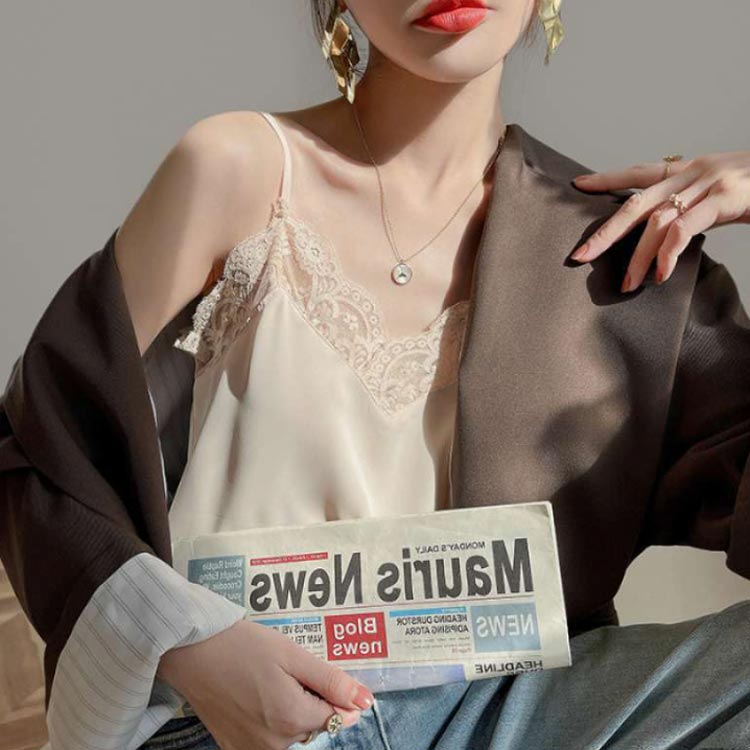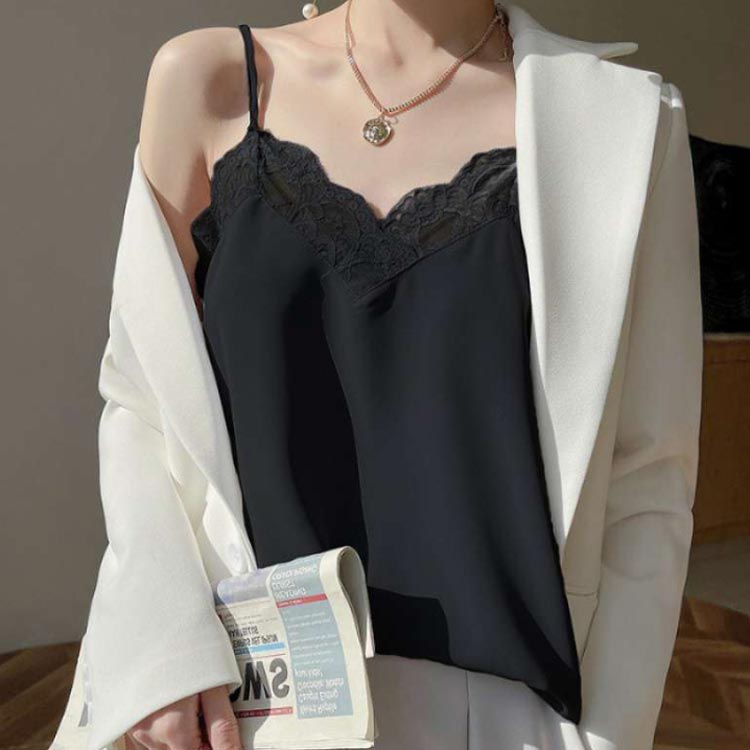 ノースリーブ キャミソール 胸元レース インナー Vネック レディース トップス 上品 レース 光沢感 サテンタッチ 大人 きれいめ かわいい 胸元 エレガント おしゃれ 2XL 30代 40代 50代 S M L XL 20代
